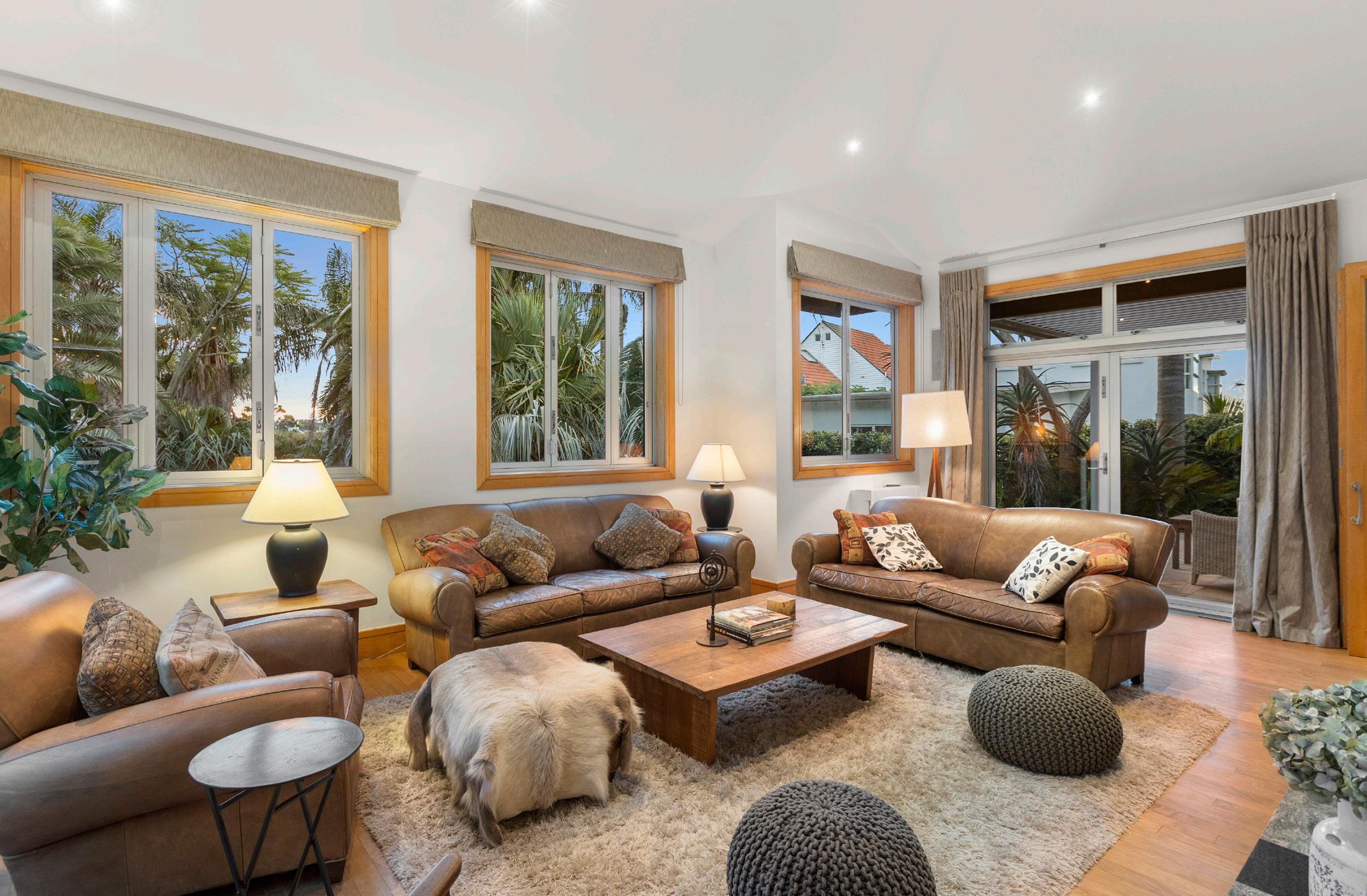 Crafted to perfection, the interior resembles pages from a design magazine, showcasing Bosch appliances, American Oak floors, and designer bathrooms. Comfort is assured year-round with heat pumps, underfloor heating, laminated hush glass, and a gas fireplace complementing the abundant natural light.