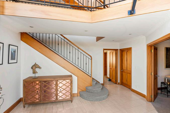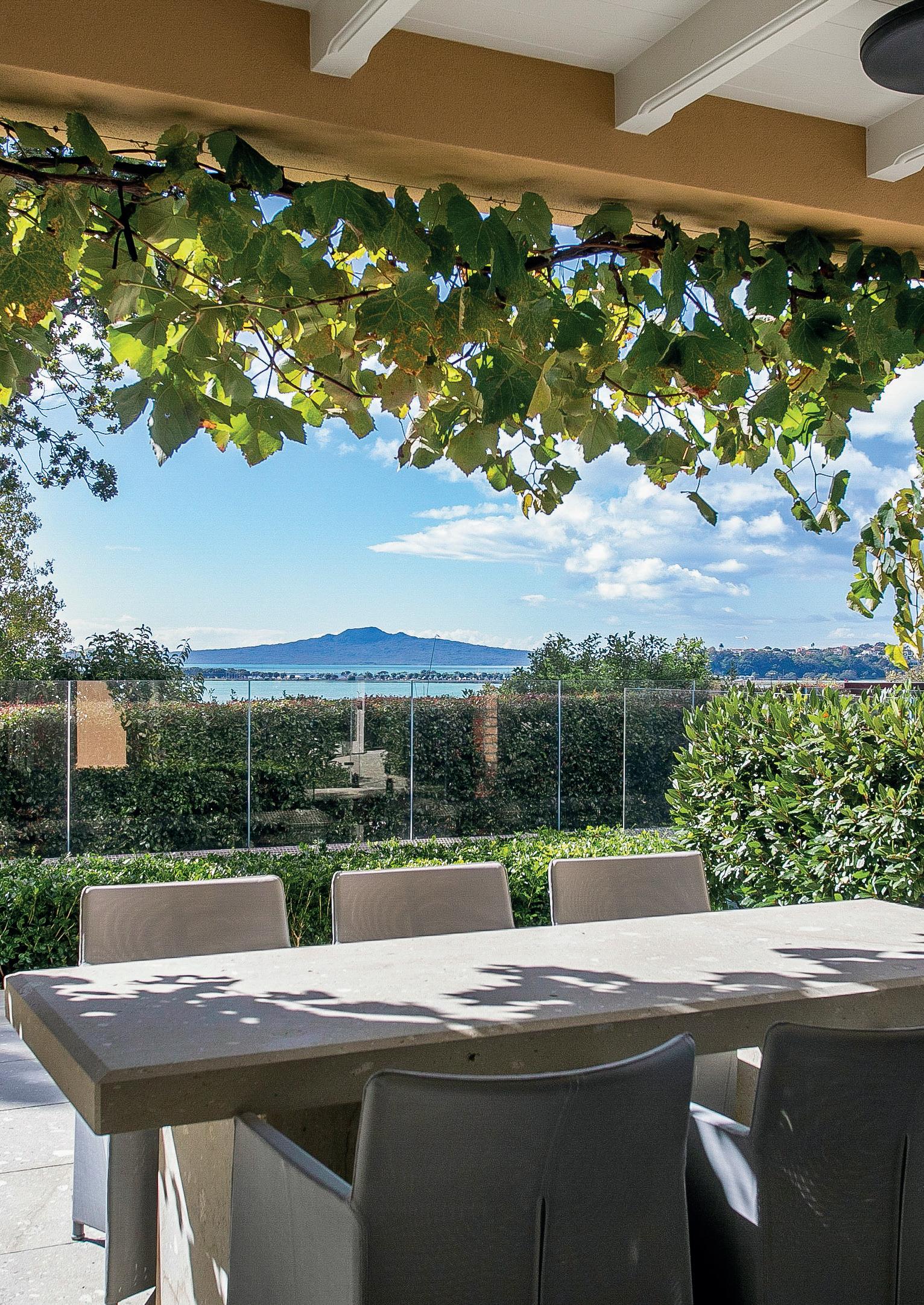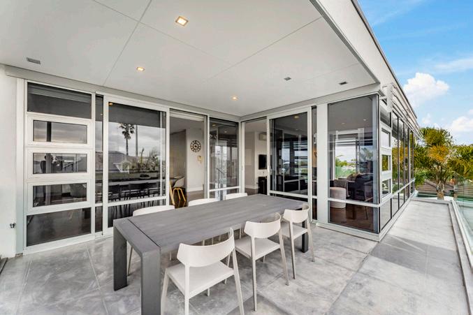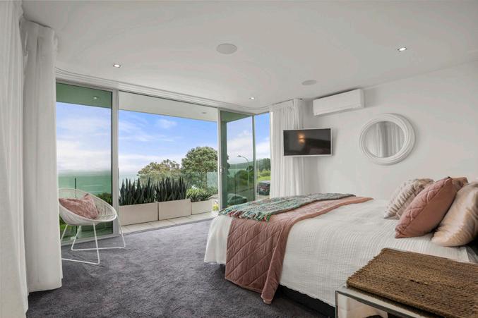 Accessed via a secure gated driveway, the residence spans three levels and features a Schindler lift for seamless mobility. The top level offers panoramic views extending from the bays to the city, overlooking Glover Park towards Beachlands and beyond.