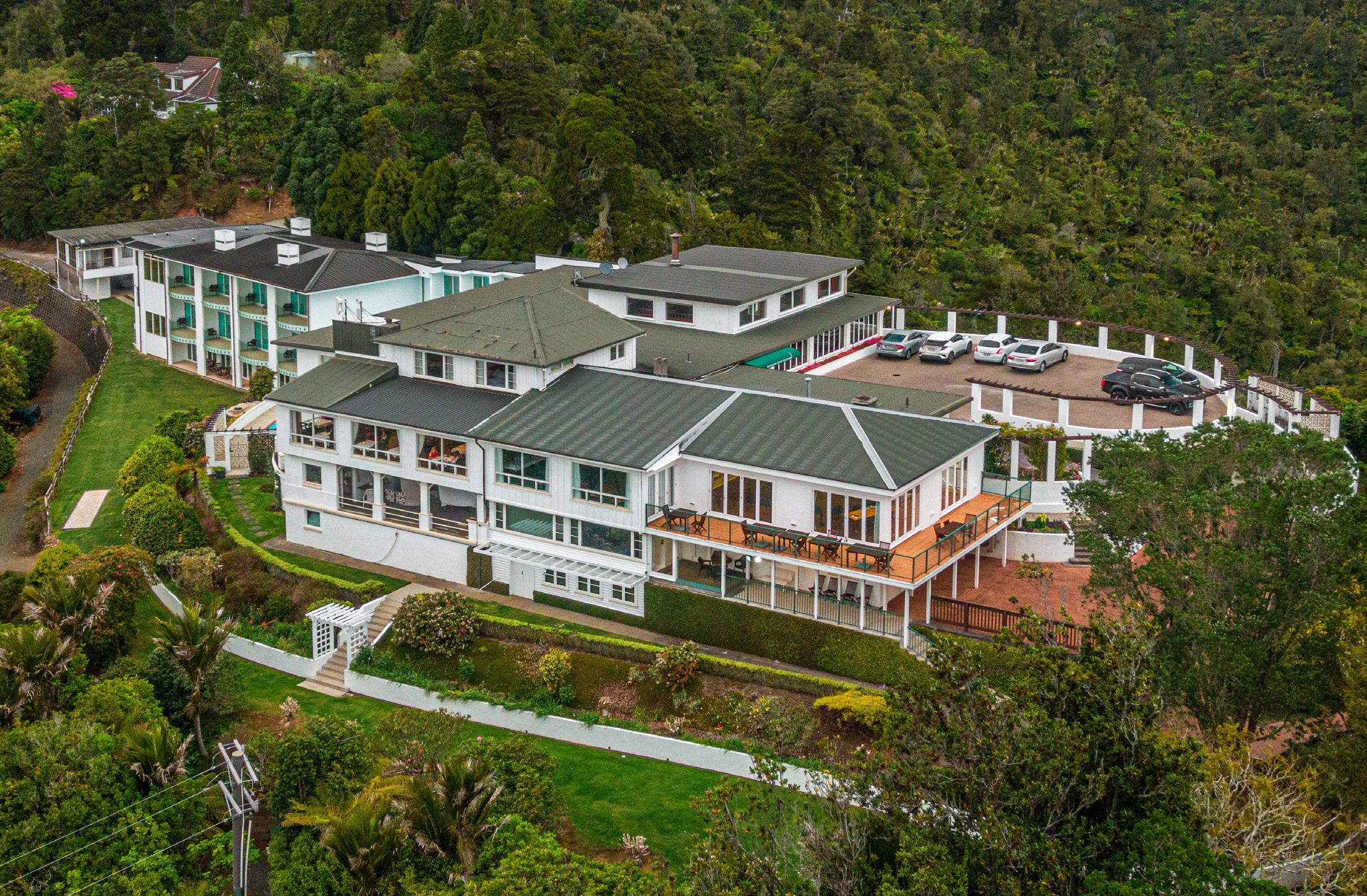 Situated on an elevated 28-hectare site, rich in native forest and protected surroundings - rare landholding this close to Auckland. Resource consent in place for an additional 12 luxury hotel rooms (valid until April 2026), adding immediate value to the existing 28-room accommodation.