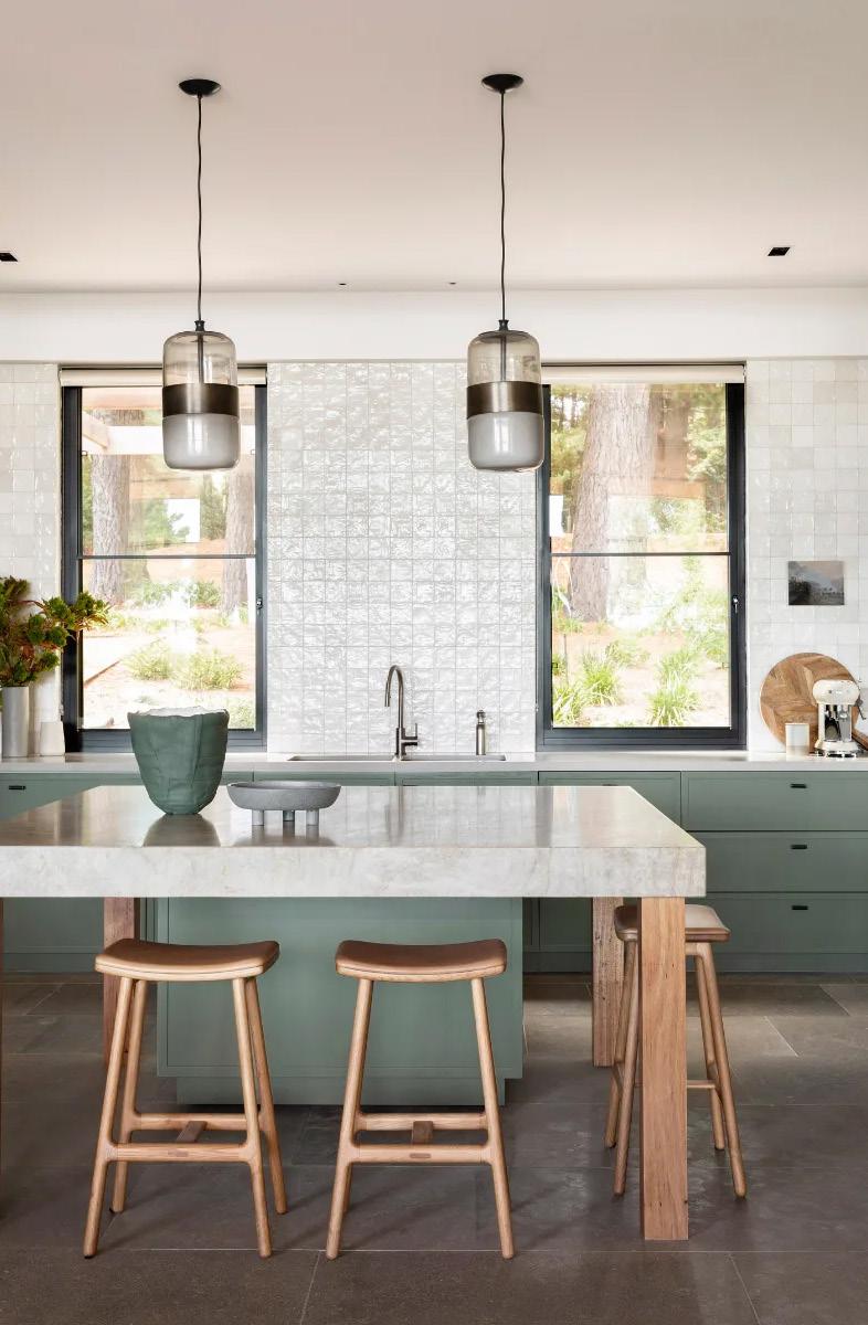 Imagine warm wood tones and wipe-friendly surfaces –perfect for letting little ones experiment. There are loads of bright colours, from appliances to tapware, but by sticking to tonal palettes, such as jewel or pastel hues, you can keep the space sleek and stylish. You’ll want big, wide benches and plenty of bar seats for pancakeeaters to chat about everything and anything. Think induction cooktops for ease and lots of baking gadgets for weekend-long fun.