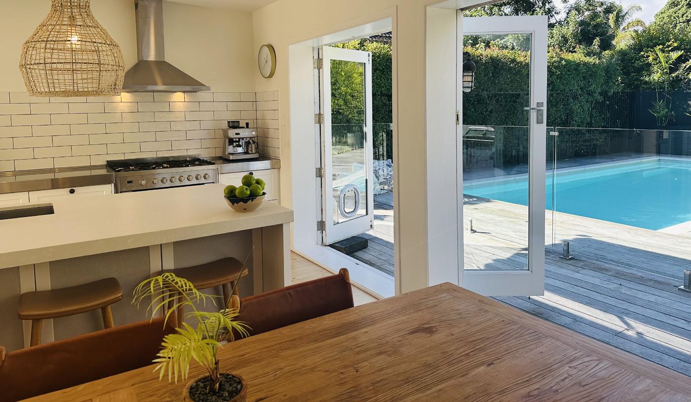 Set on a private 933m2 (more or less) section in the heart of the Bays, this beautifully updated 1950s home is a true sanctuary for modern family living. Solidly built in plaster over brick and weatherboard, it blends timeless mid-century charm with contemporary comforts and resort-style amenities.