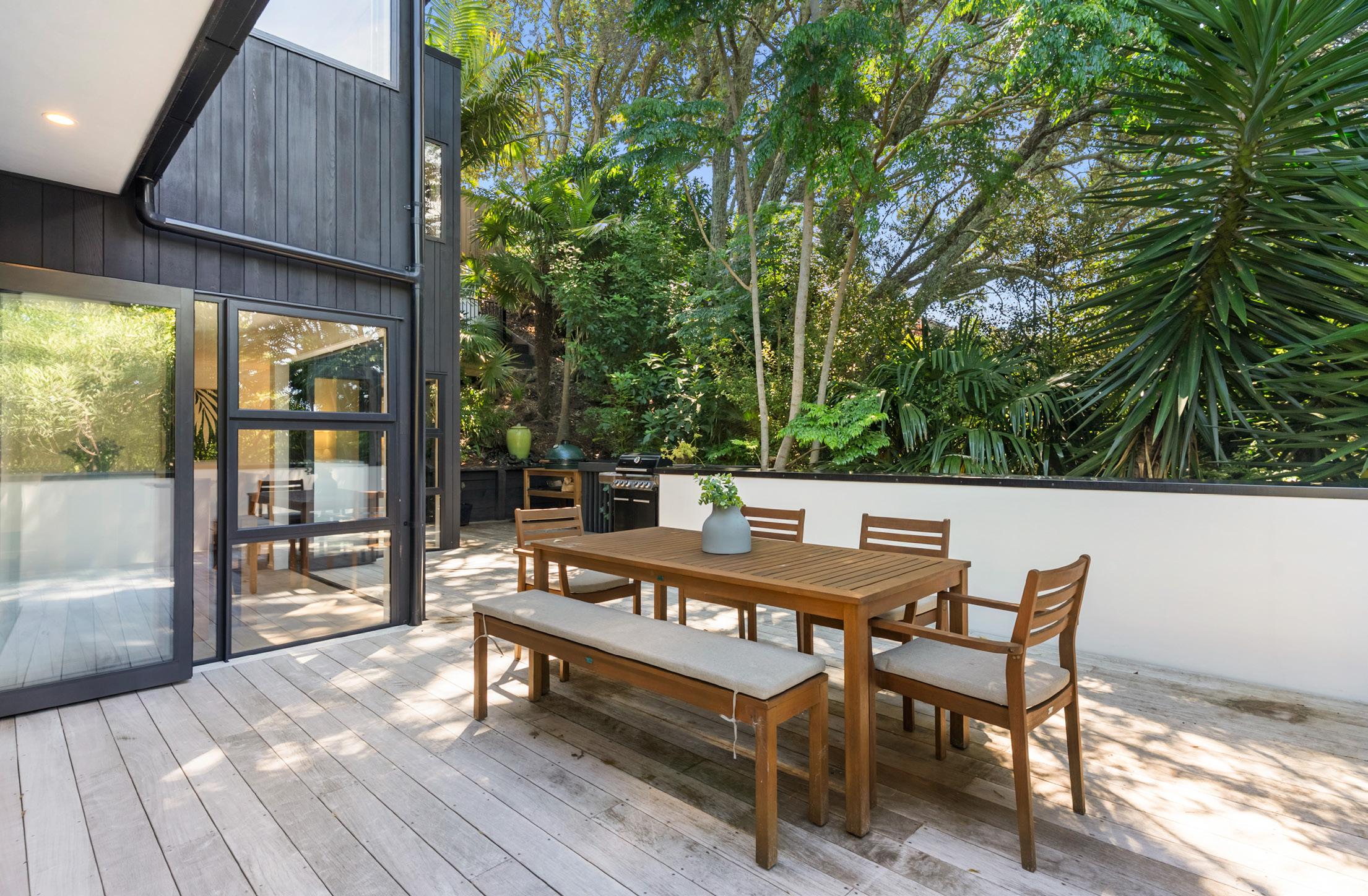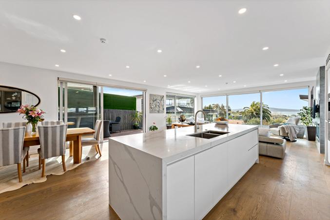 • Open-plan living and dining flow effortlessly to sunny, elevated decks on three sides