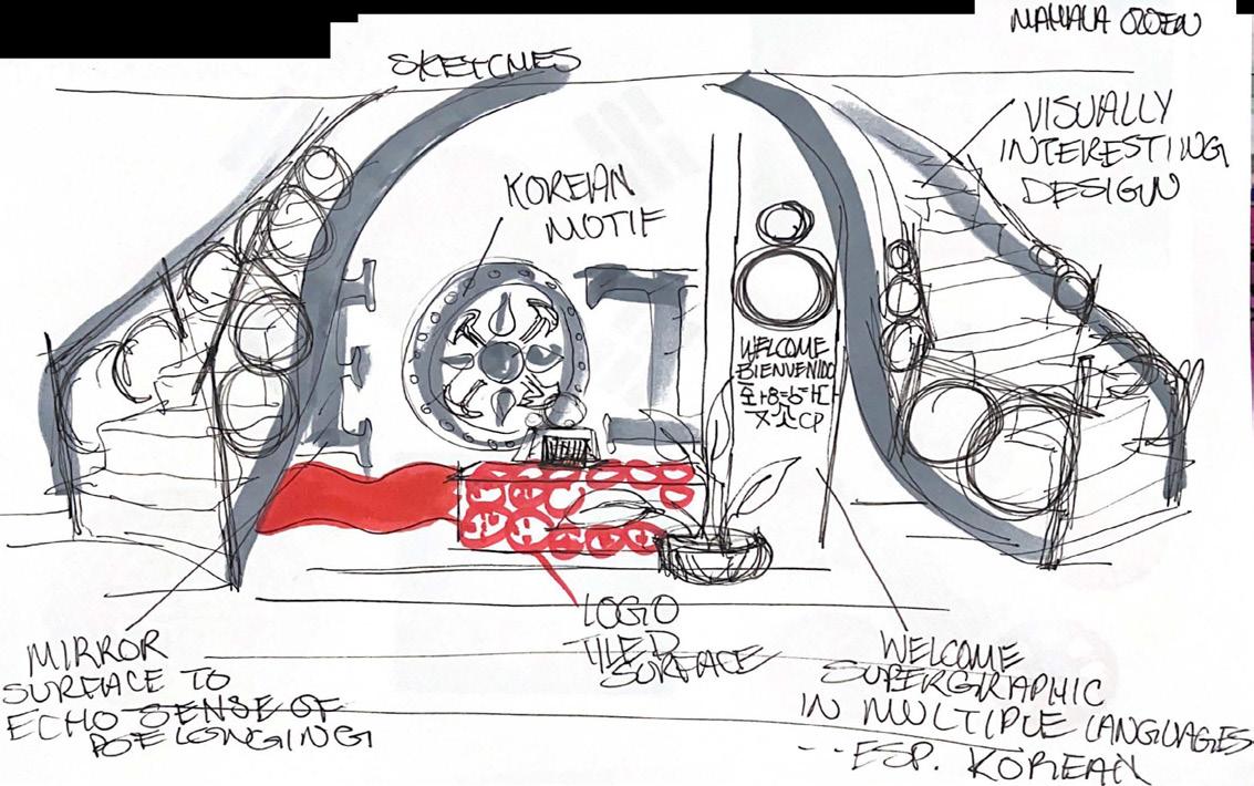 NEXT is a startup beauty brand creaed by a Kore an woman. The brand focuses on producs that are vegan and inclusive. My inspiration comes from the owner’s Korean background and feaures symbolism, color reference and hierachial order. The color red, inspired by the Korean flag, means positivity. White represents peace and purity. Biophilic references are made throughout the space to seamlessly relate to the brand’s sustainable focus.