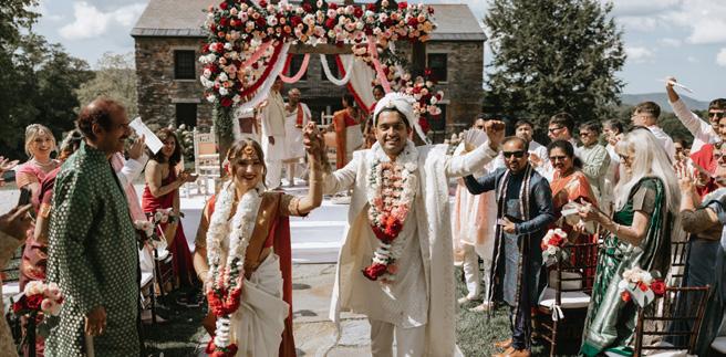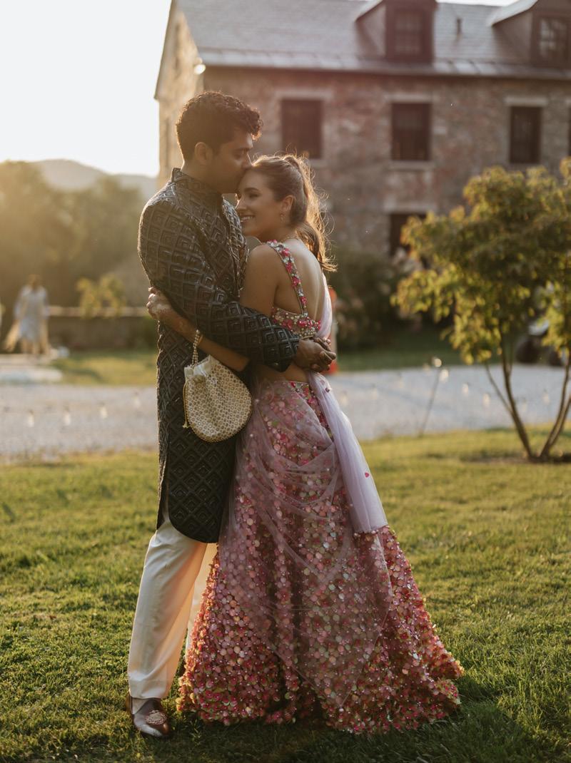 For their wedding, Deanna & Raghava wanted a gardenfairytale vibe with British countryside charm woven into traditional South Asian culture—romantic, organic, and a little enchanted, like the kind of weekend where you halfexpect bumblebees to be hired as floral consultants. They chose The Ruins at Sassafras for the venue. Set across acres of sloping hills with Berkshires views, the venue is filled with hidden little moments—a bridge over a creek, a tuckedaway pond, wildflowers, and corners that basically beg for cinematic portraits.