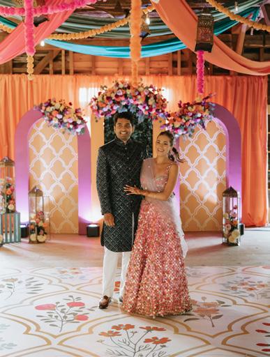 From the very first moments, it was clear that this wedding was rooted in intention. The pre-wedding festivities carried a joyful rhythm, filled with movement, color, and anticipation. Soft pastels swirled through the sangeet, laughter echoed freely, and family bonds took center stage—setting the tone for what would become an unforgettable weekend.
