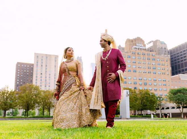 Bridal & Bridesmaids Fashions: The New Delhi Company / Bridal Fashions: Amara Couture (Brampton) / Bridal Jewelry: Festive Essentials / Bridesmaids Fashions: Bombay Market (Kamal Karia Goverdhan) / Catering: Punjab Fine Indian Cuisine, Rasna / Catering (Additional): Kurry’s Indian Cuisine / Ceremony Venue: MGM Grand Detroit / Cinematography & Photography: Killer Creations Photography and Cinematography / Content Creator: Sweet Little Things / DJ: DJ Epic / DJ & MC: DJ Nimz Entertainment / Event Designer: Utsav Planners, Inc. (Rupali Bedi) / Floral & Decor: Utsav Planners, Inc. (Rupali Bedi) / Groomsmen Fashions: Deep Shah / Hair: Hair by Rochelle J / Hair & Makeup: JHobby Makeup Studio, Vanessa V / Live Music (Flutist): Anis Chandani / Planning & Design: Utsav Planners, Inc. (Rupali Bedi) / Reception Venue: MGM Grand Detroit