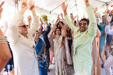 Floral Design: Avela Floral Design / Cinematography: Aria Films / Decor: Elegantize Productions / DJ: DesiBel / Draping & Styling: Drapes by Anne / Engagement & Bands Bridal Jewelry: Tiffany & Co. / Event Design: Elegantize Productions / Hair & Makeup: Lemondy / Indian Bridal Jewelry: Malabar Gold & Diamonds, Sona Jewelers / Invitations & Wedding Stationery: Minted / Lighting: Elegantize Productions / Live Music: Hudson String Quartet / Mehndi Artist: Henna by Aarti / Photography: Dear Edith and Lily / Planning & Design: Weddings by Roma / Registry: Zola, Anthropologie / Rentals: Columbia Tent and Event Rental, Mahaiwe Tent, Classical Tents and Party Goods / Sangeet Bridal Fashion: Anshika Tak / Tuxedos: Robbie & Co. / Venue (All Events): The Ruins at Sassafras Museum / Western Ceremony Bridal Fashion: Pnina Tornai