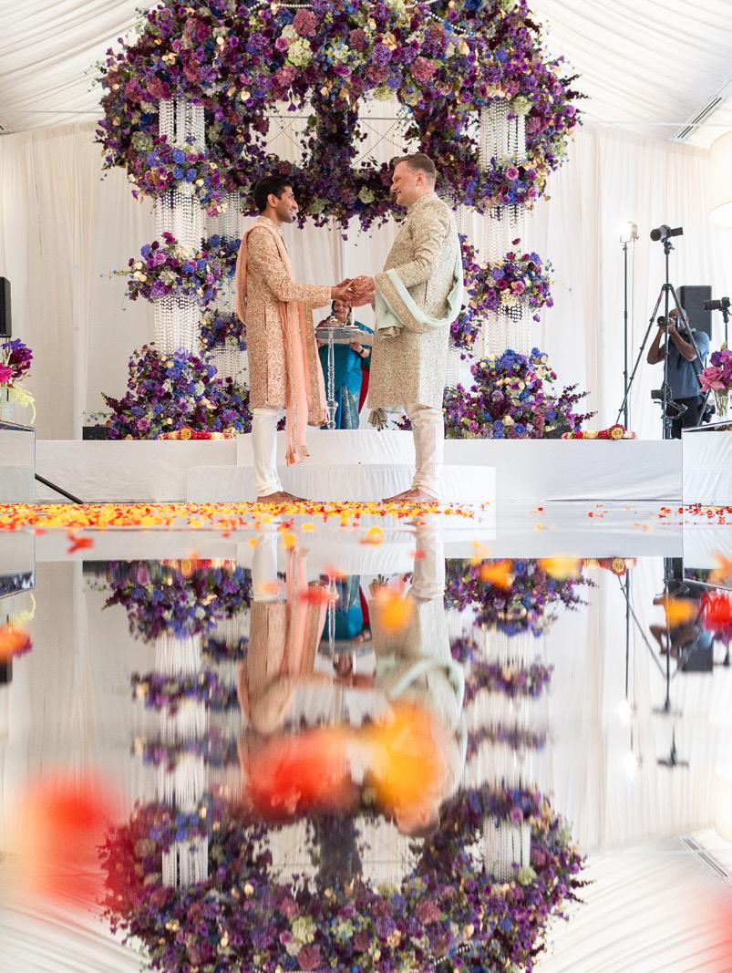Anjali & Sunny’s wedding unfolded as a study in balance—between continents, aesthetics, and emotions—proving that when a love story spans the globe, the celebration can do the same. Their dualdestination Indian wedding moved seamlessly from the sunlit elegance of Miami to the stately romance of the English countryside, creating two distinct yet harmoniously connected experiences.