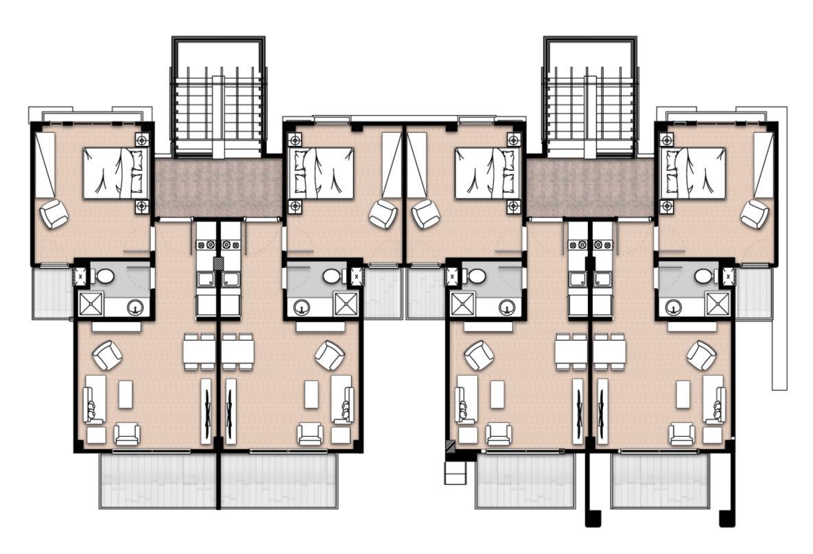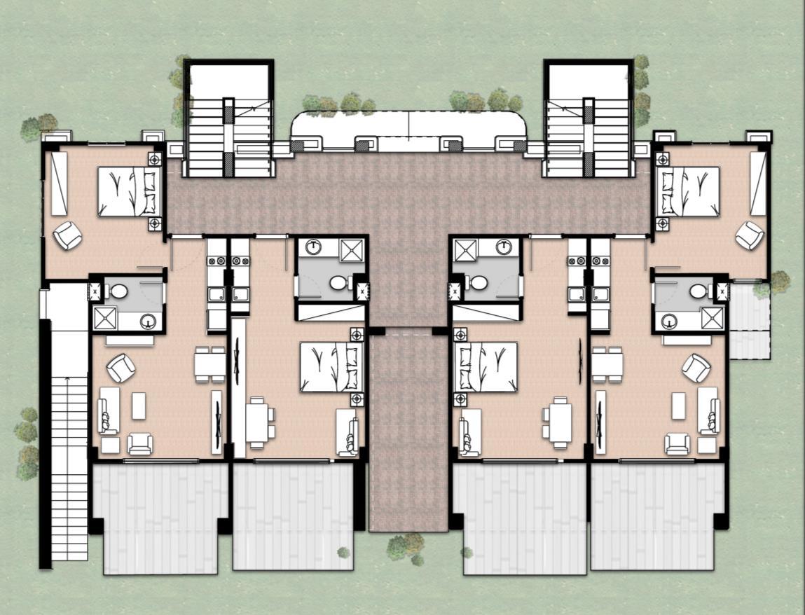 Bedroom + Living Area Bathroom Kitchen Kitchen Bathroom Living Area Bedroom Landscape Terrace Landscape Terrace Entrance
