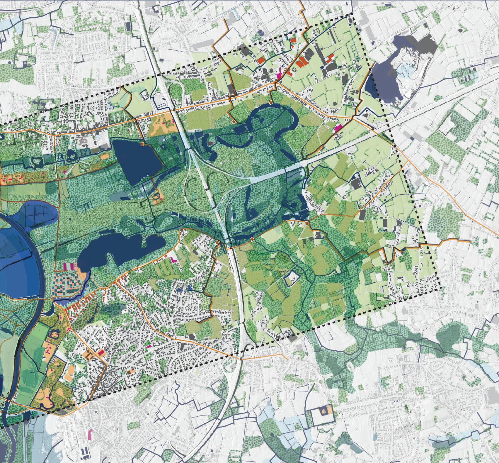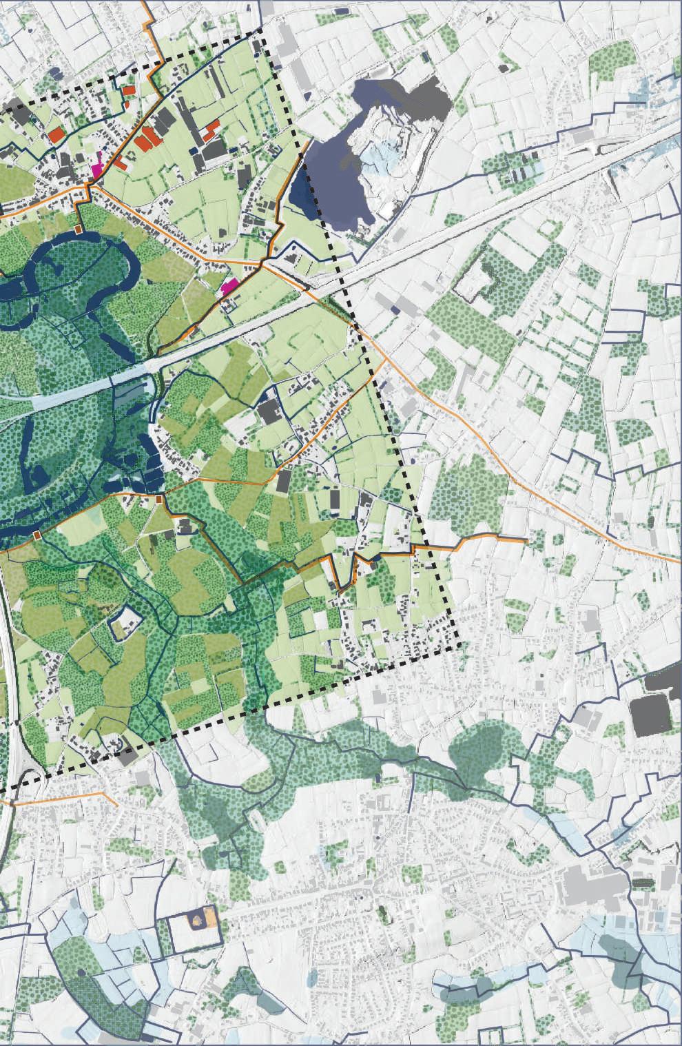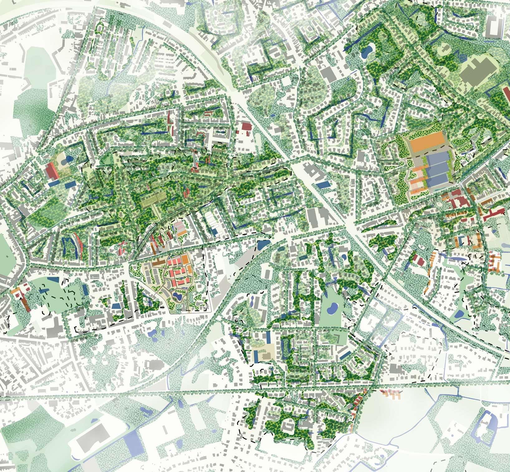 This diversity of landscape (types of green, types of blue) and social diversity (housing mix, social infrastructures) is the main quality of our site, the objective is therefore to embrace and reinforce it with strategic proposals. Green and blue structures will be increased, connected and better in tegrated to strengthen that diversity in a positive way, by looking at opportunities already present in the landscape , and multiply the opportunities to introduce green and blue in the area.