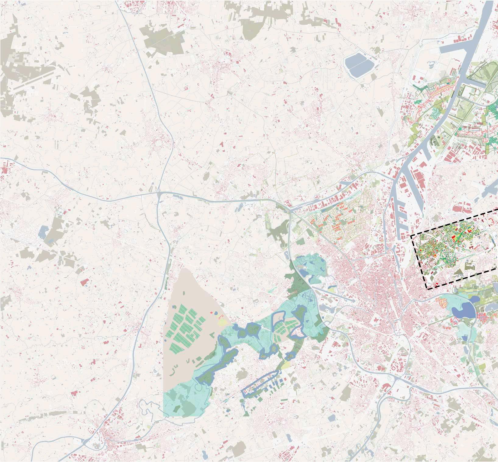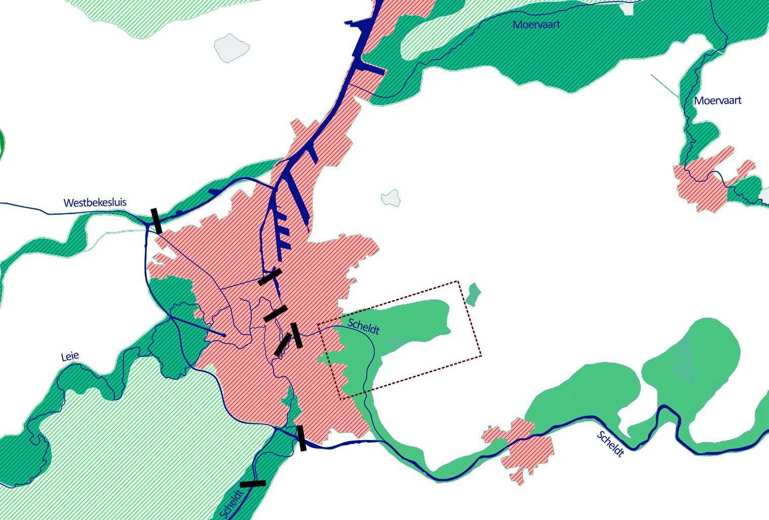 Climate change is having a considerable impact on Ghent as a metropolitan system, but considering it as an opportunity allows to rethink the relation ship between current settlement patterns and the underlying landscape. The periphery of Ghent can become the new front to address these challeng es.