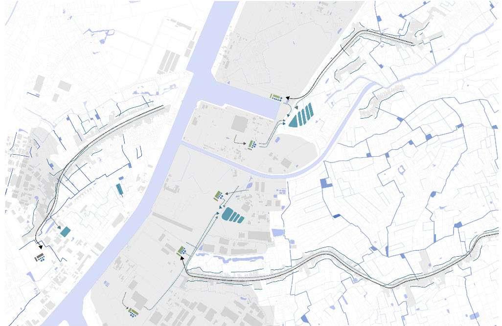 Starting from the existing farms and water ponds, making them the centre of the archipelagos, will generate new public spaces and new relationships with the farms and accompanying agricultural fields and specificities.