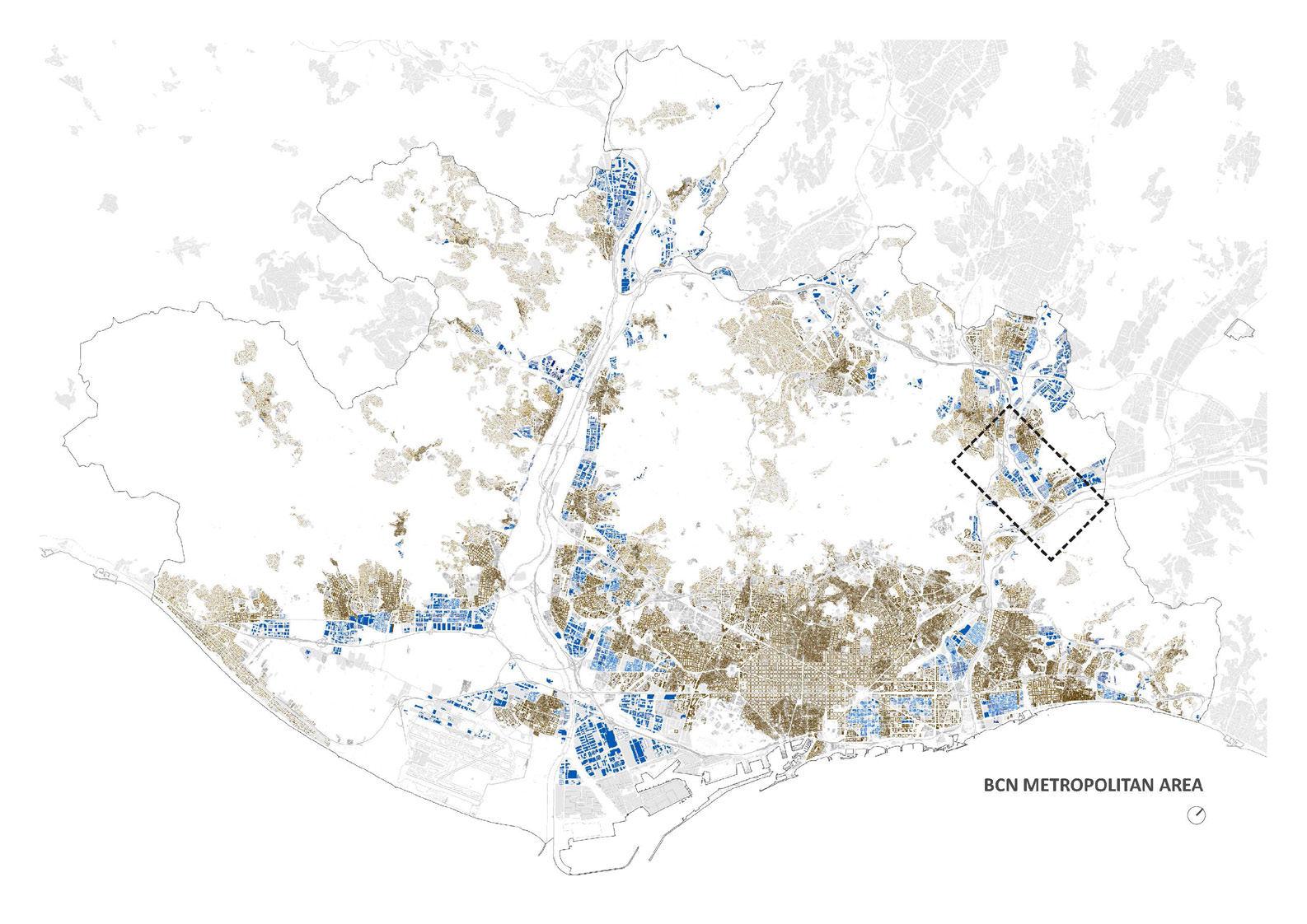 The Vallés region, located in the pre-coastal depression - in between the coastal and pre-coastal mountain ranges- is along the northers border of the Barcelona Metropolitan Region. Its strategic position and topographical location made it the ideal place to allocate industrial uses that did not fit in the city, together with sprawling urbanization infrastructure.