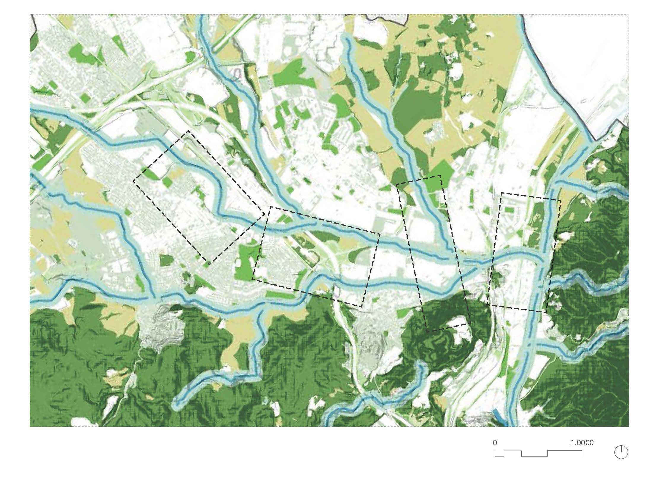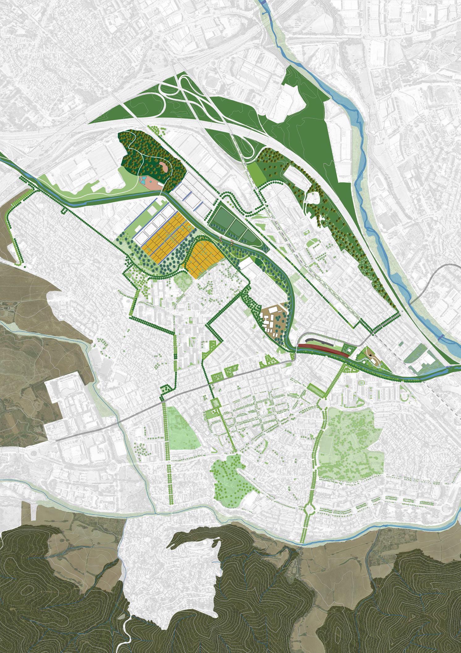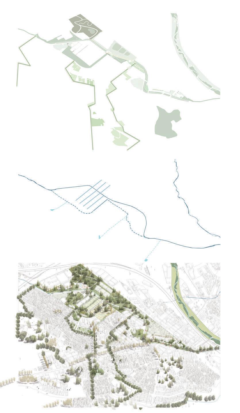 Finally, the blue-green landscape will structure the new urban tissue, which is also directly related to the topography.
