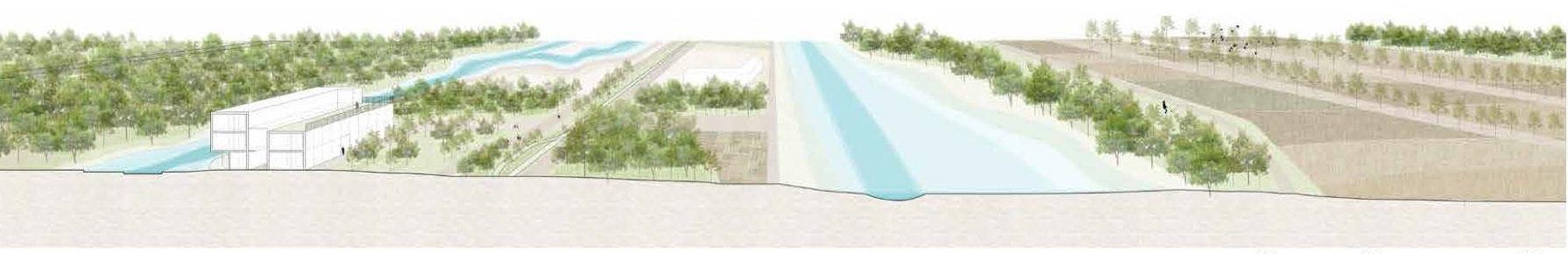 The three main aspects of the project are the introduction of productive landscape intotheindustrialareaofMontcada,thephasedconversionoftheindustrialareainto a wetland, and the creation of an entrance to the Agriculture Park of Pla De Reixac. Allelementssupporttheoverallvisionofturningthesiteintoaproductivelandscape.
