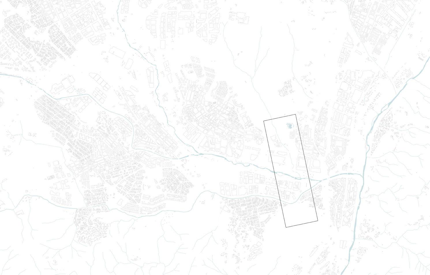 Following the topography lines, green networks through the city are created that connect to near by landscape figures like moutians and hills. These networks are afforested and pacified to reduce the urban heat island effects in the city but to also provide shadows during the hot summer months.