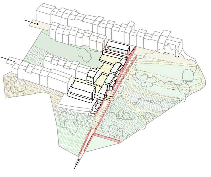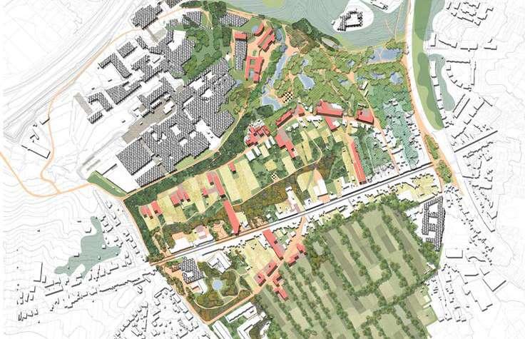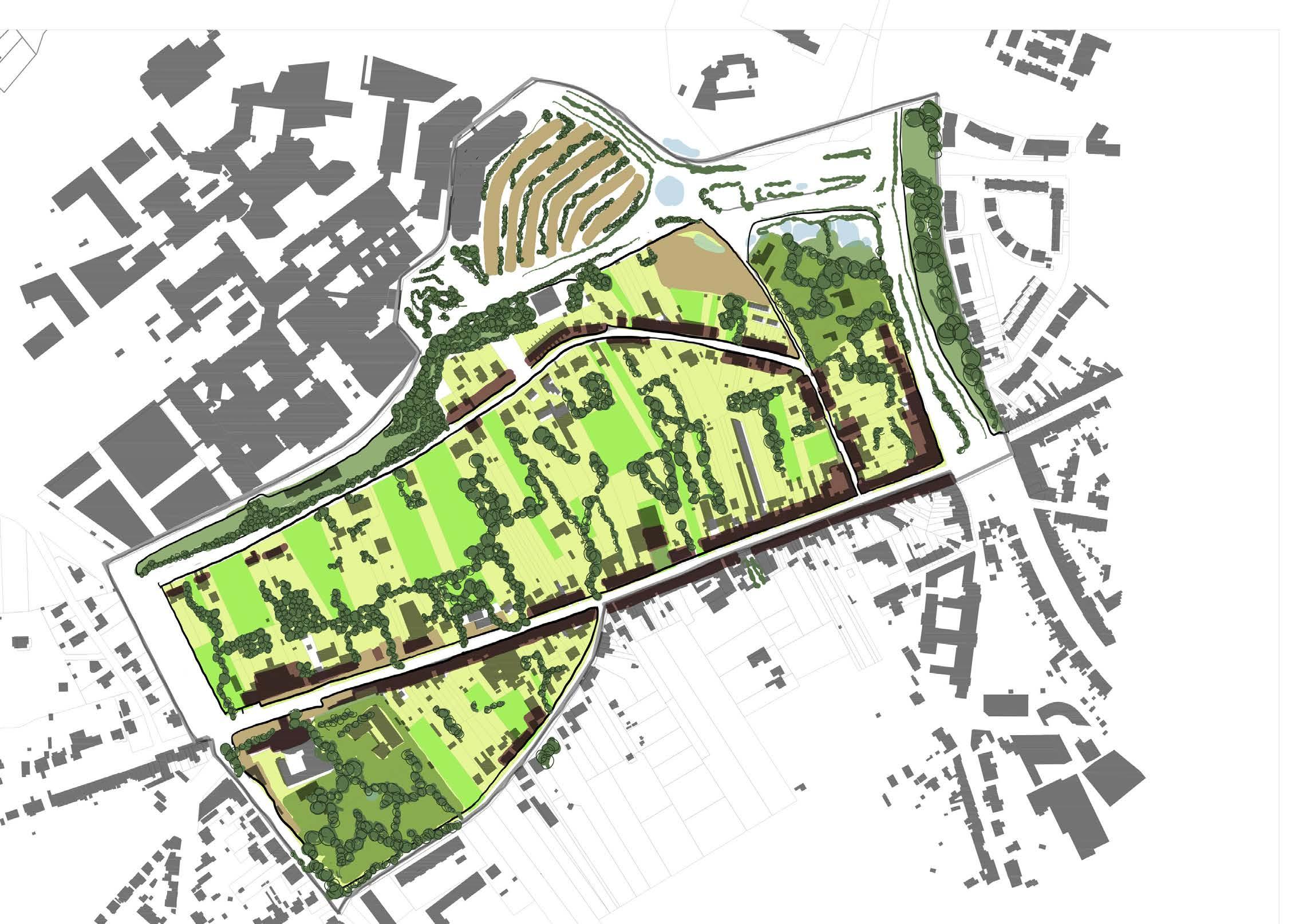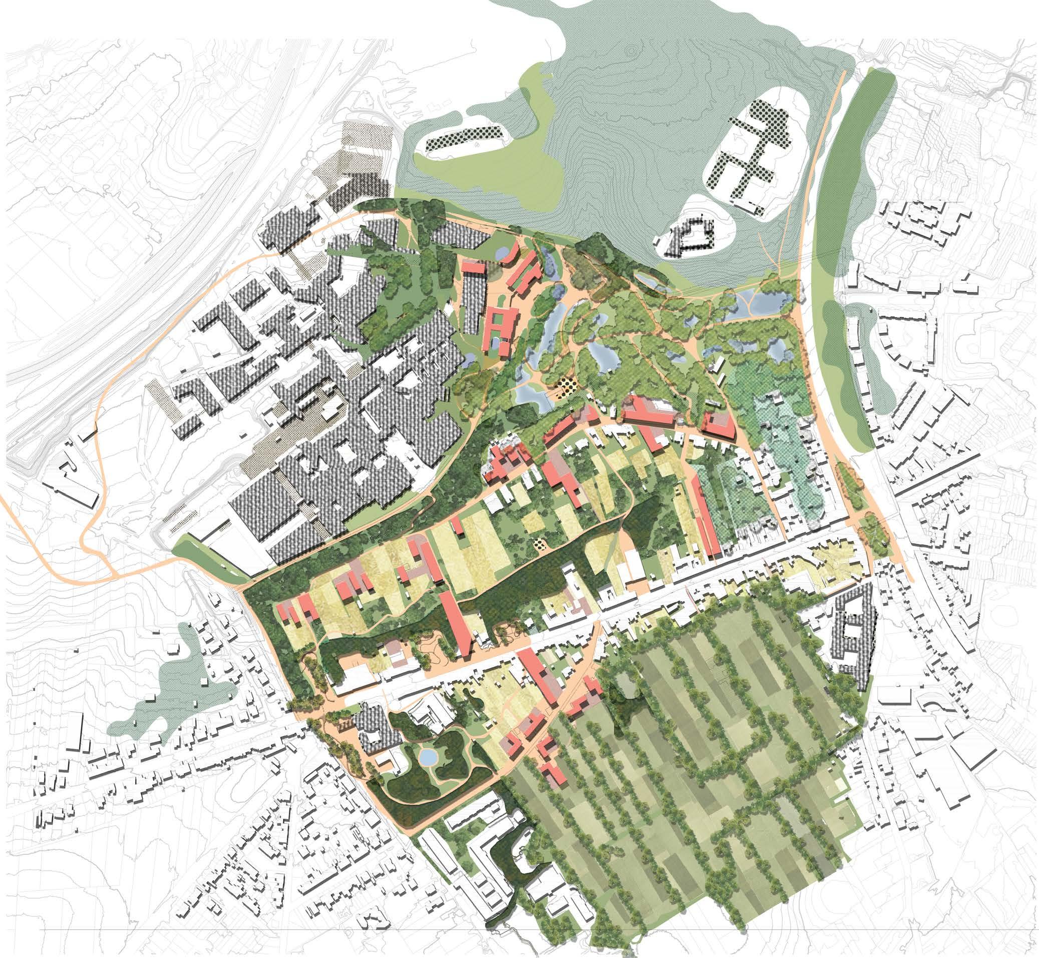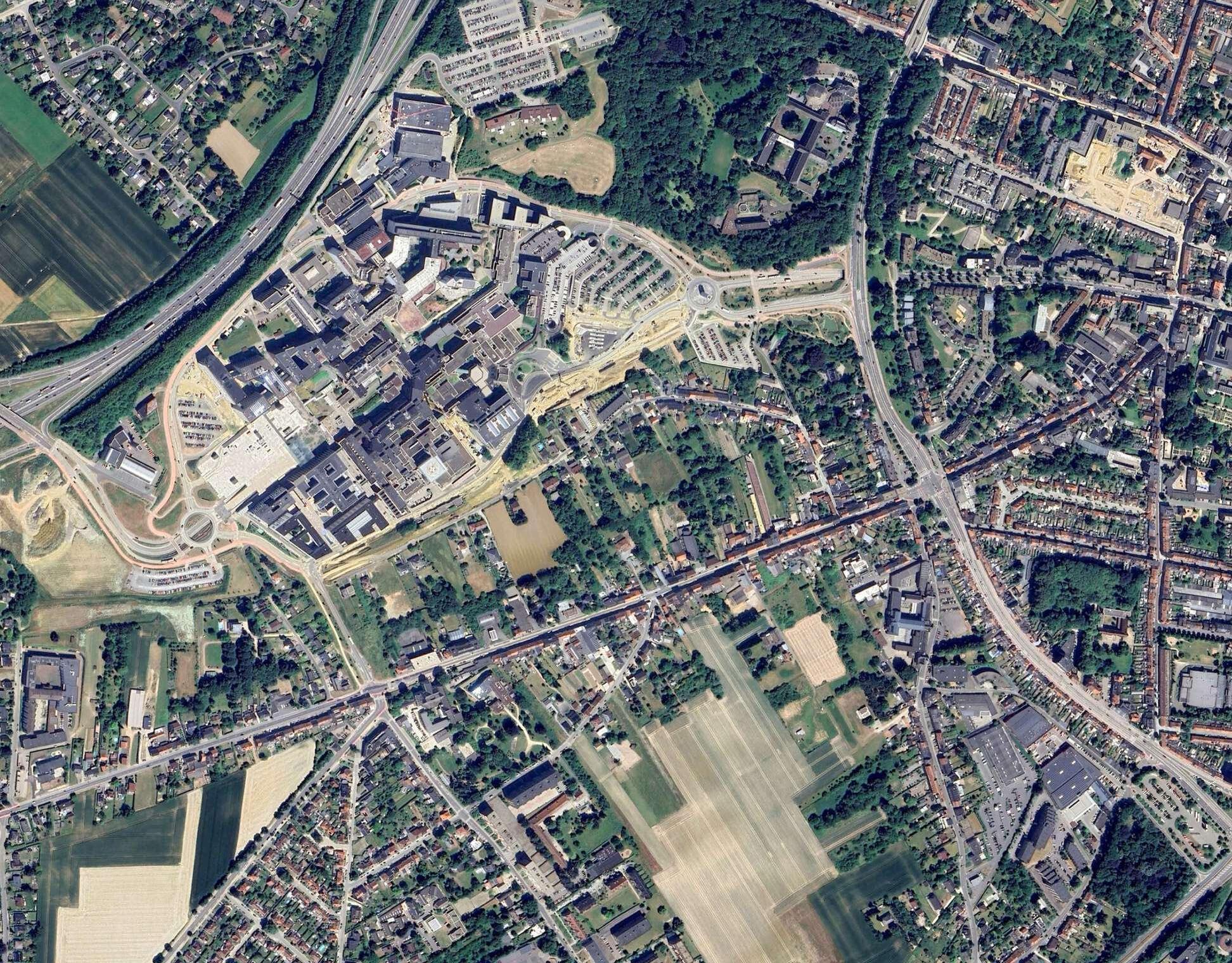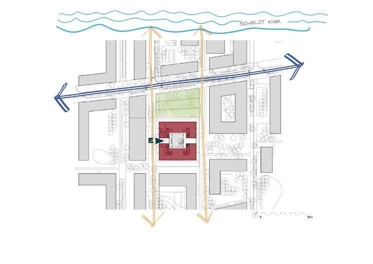 The site is comprised of fragments of urban fabrics on the western side (Witness hills) of Leuven, squeezed between the highway and ‘vesten’ (medieval earthworks) landscape (that was turned into a ring road). Since the 1950s, the area has become a dumping ground for larger institutions (university campus, university hospital, music academy, bank headquarters, big retail, etc.). The area is, in general, overinfrastructured (including large parking lots).