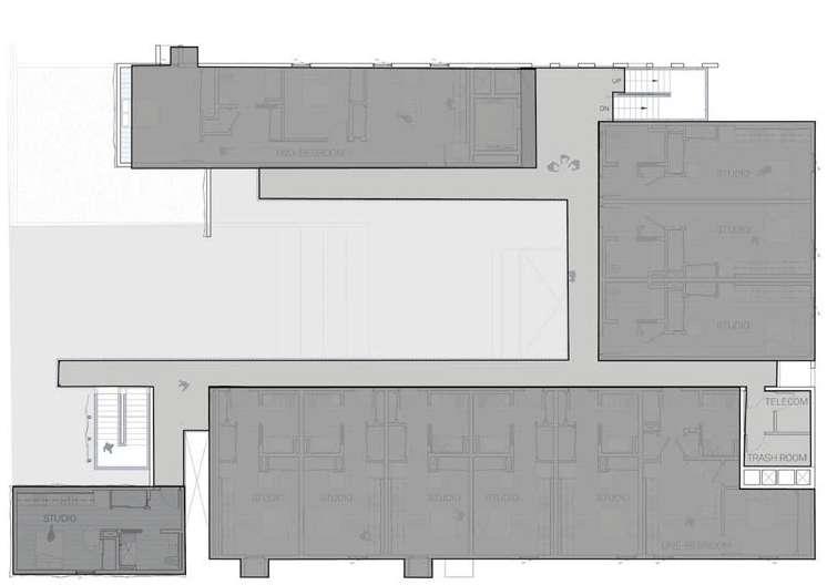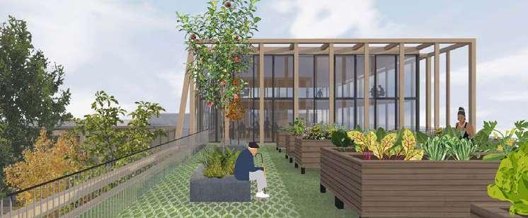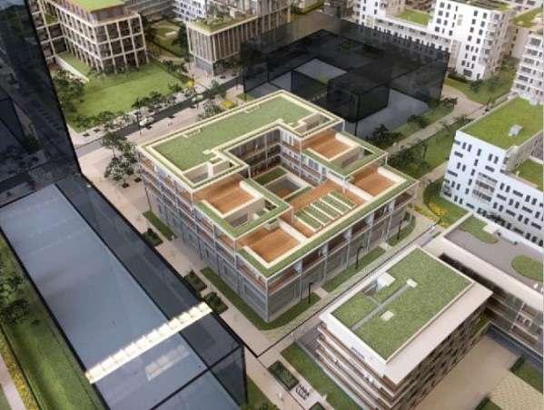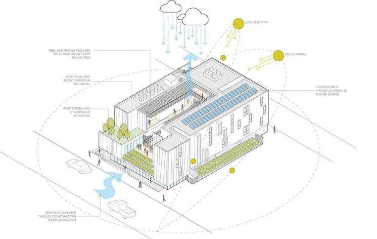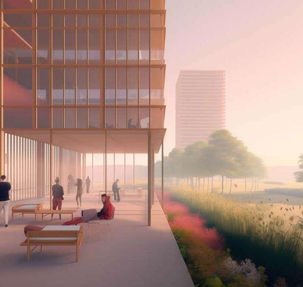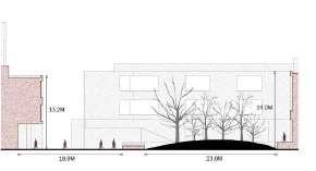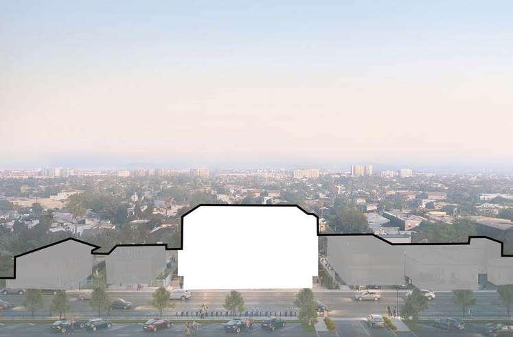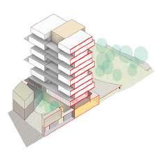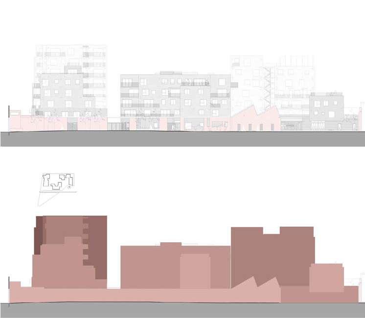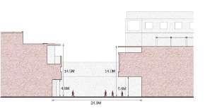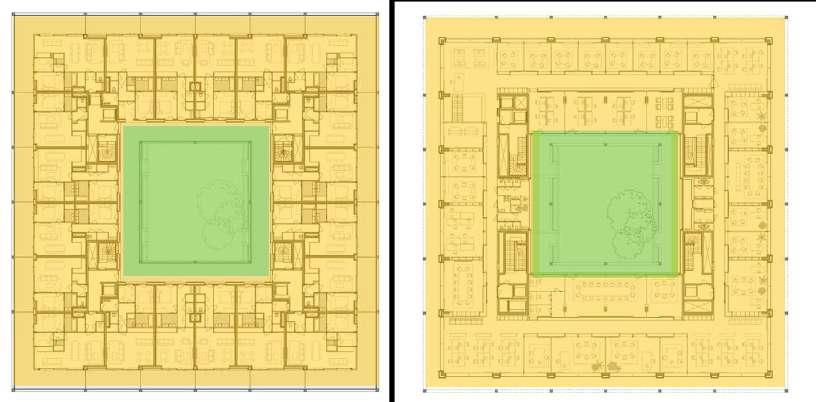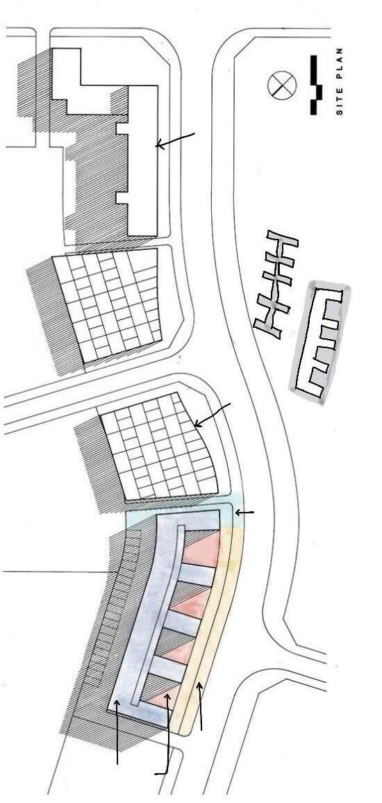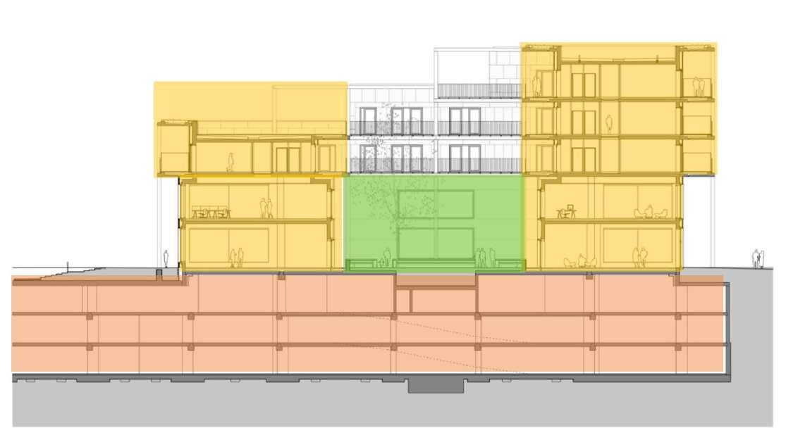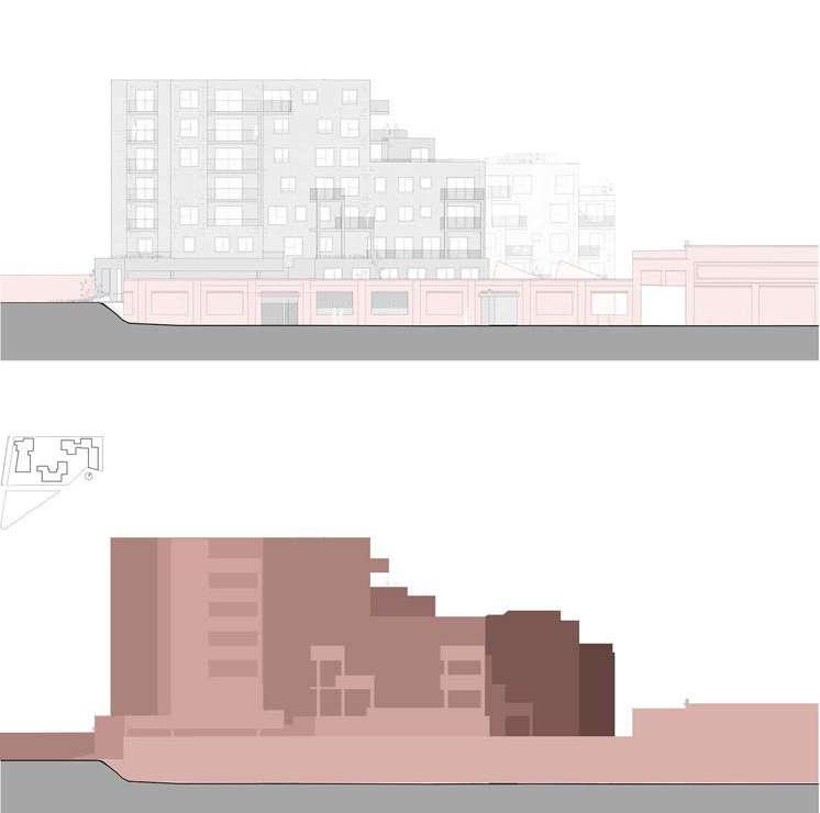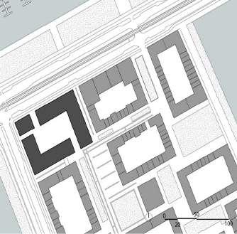 For each site, the design should aim for a density with a Floor Area Ratio of minimum 2.0 in relation to the existing impervious surfaces on site (parking, roads and buildings)