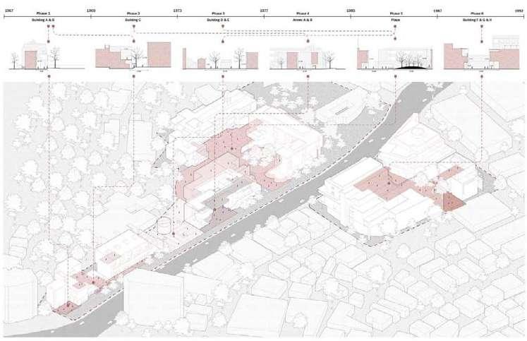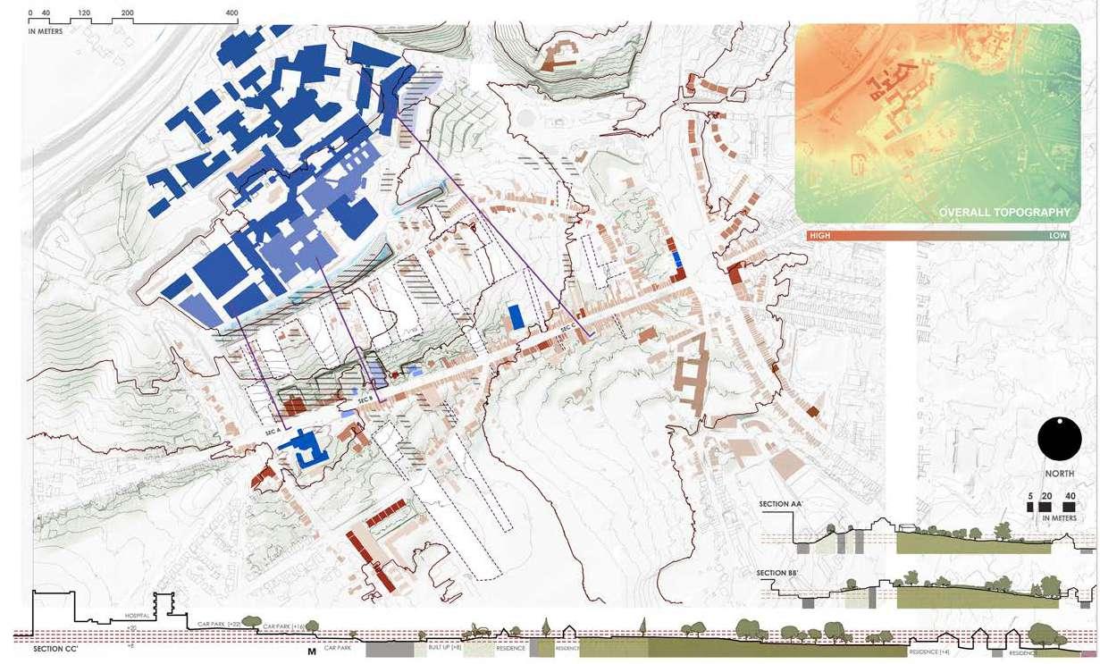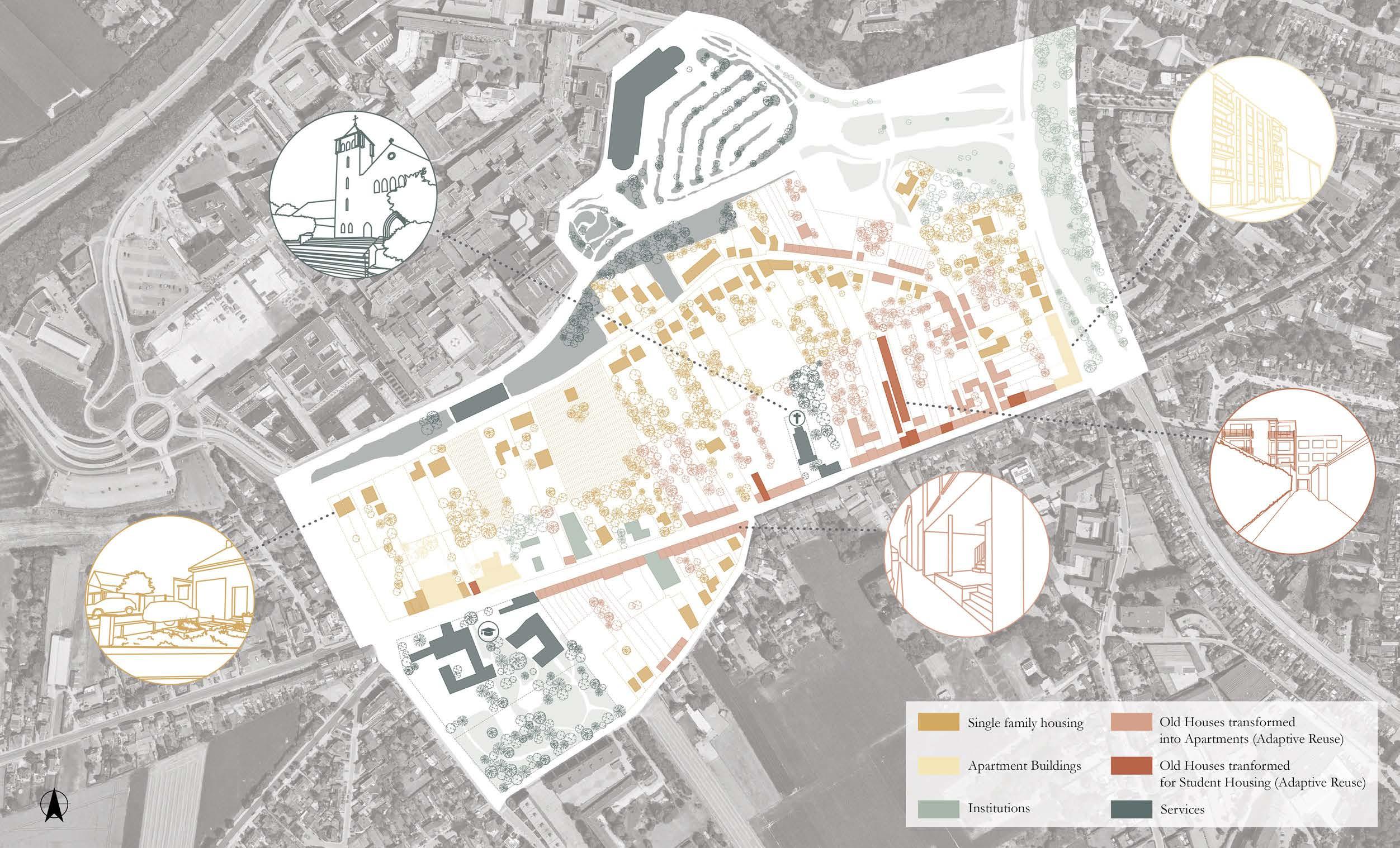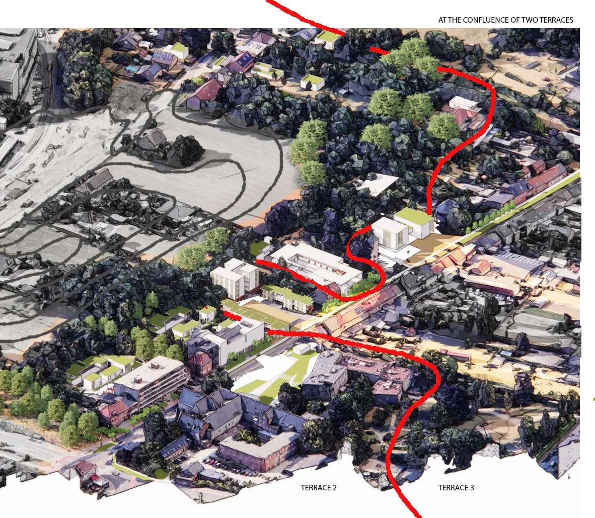 Specific sites for intervention were identified due to their relationship with the university (and a broader discussion of city - (monotonous) university), the gentrifying effect of the university and major shortages in the (student) housing market). All the sites are comprised of fragments of tissues (hospital, school, convent, etc) and the strong topographical relief that characterizes this area of Leuven.