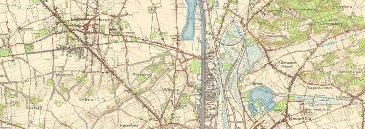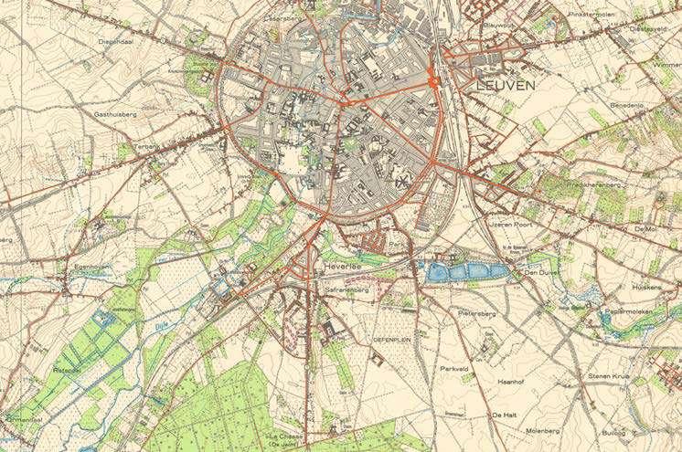 The Vandermaelen map from 1850 highlights the larger institutions that are set within the landscape. The larger estates of these institutions define figures in the landscape and often form the nucleus of car-dominated campuses of the enormous institutions that we find around Leuven today.