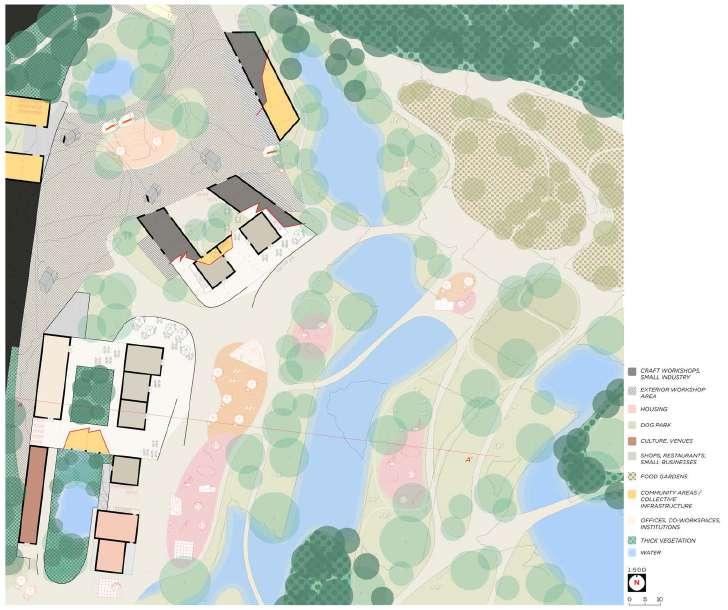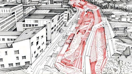 As a monofunctional dumping ground, the site lacks a clear structure (besides the underlying landscape) morphology and, despite its heavy programs, urbanity. The area’s potential identity and value is compromised by the dominant car-orientation and complete lack of (qualitative) public space.