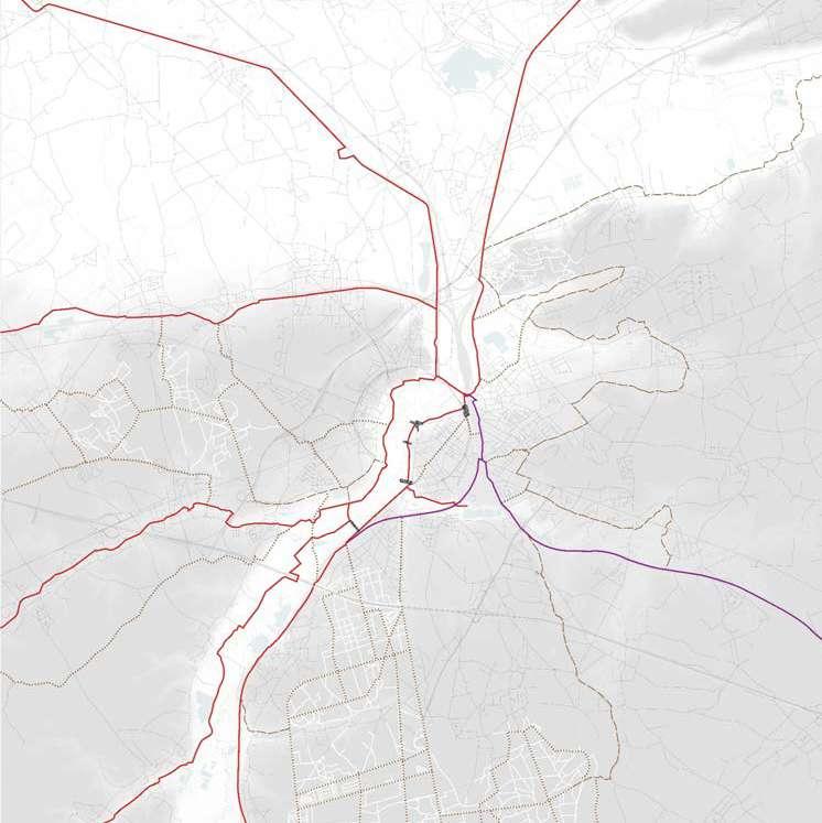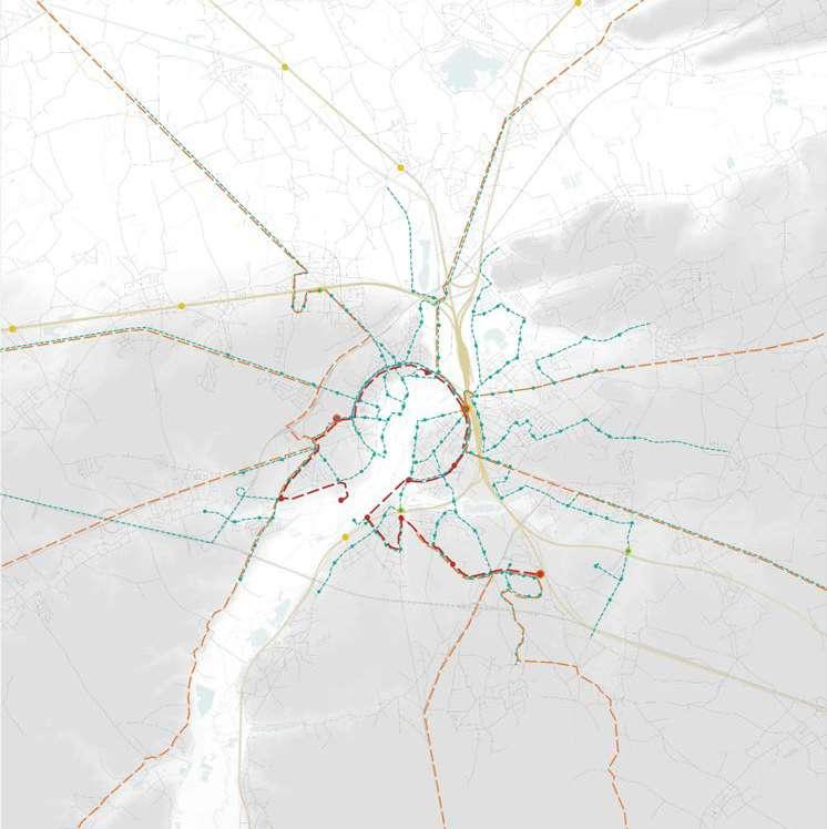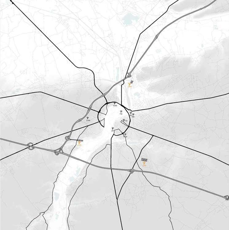 Over time the city ramparts have been transformed into a linear park like the Remy boulevard. In the 1970's this landscape was dramatically uprooted. Through highway engineering a ring road is carved into the landscape. The dominance of the car becomes all-present around the city.
