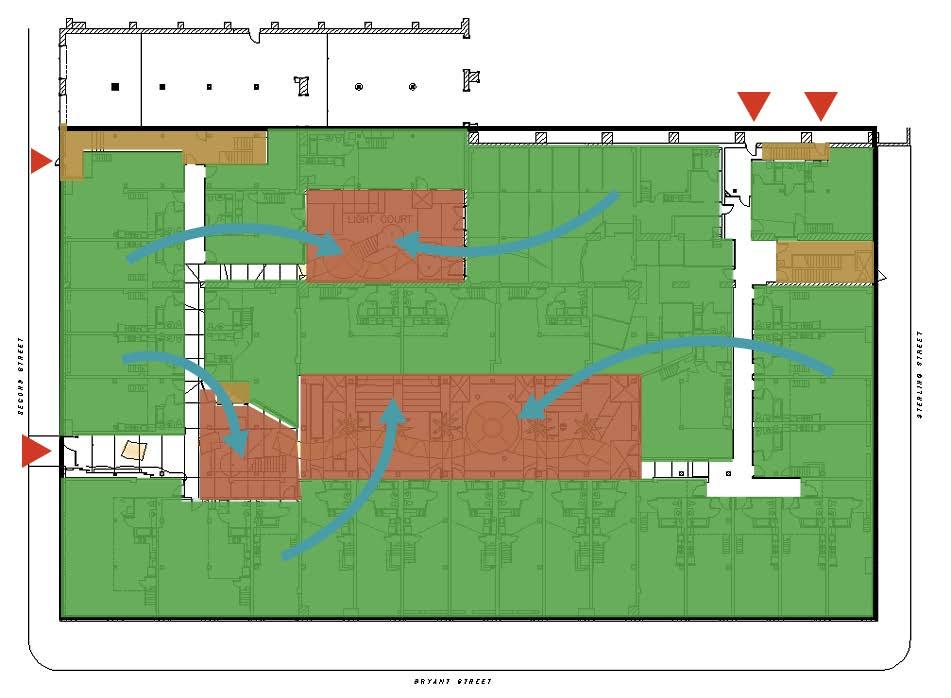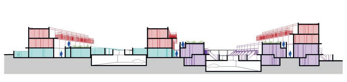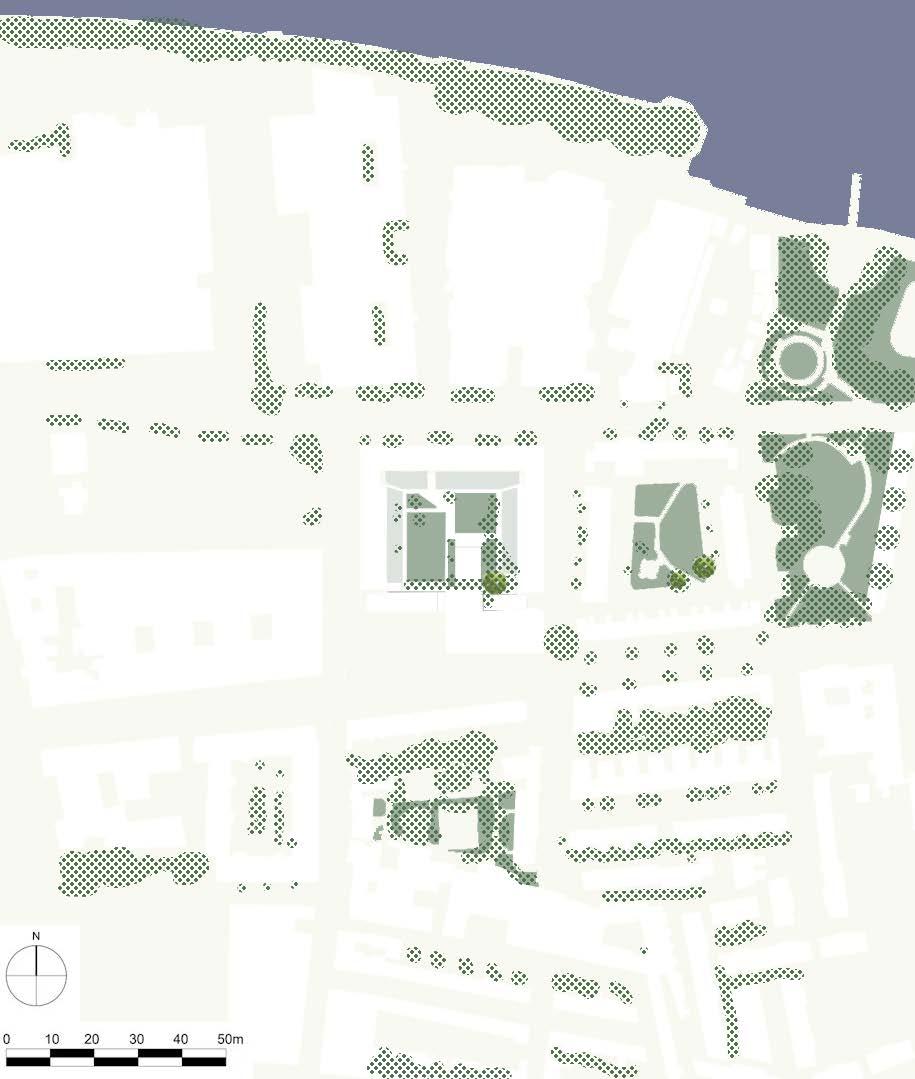 • (Urban tissue) - The building parralel foot print with a courtyard space refrences the exisiting urban fabric both through the height of the building and through its geometry.