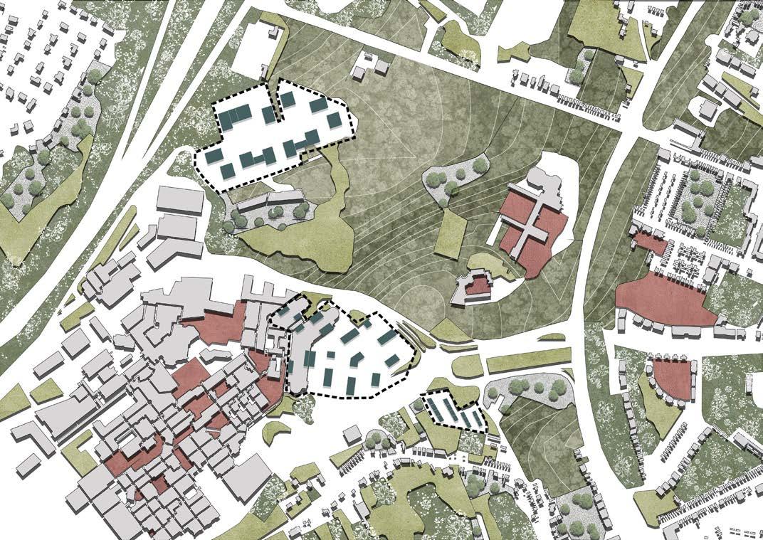 Specific sites for intervention were identified due to their relationship with the university (and a broader discussion of city - (monotonous) university), the gentrifying effect of the university and major shortages in the (student) housing market). All the sites are comprised of fragments of tissues (hospital, school, convent, etc) and the strong topographical relief that characterizes this area of Leuven.