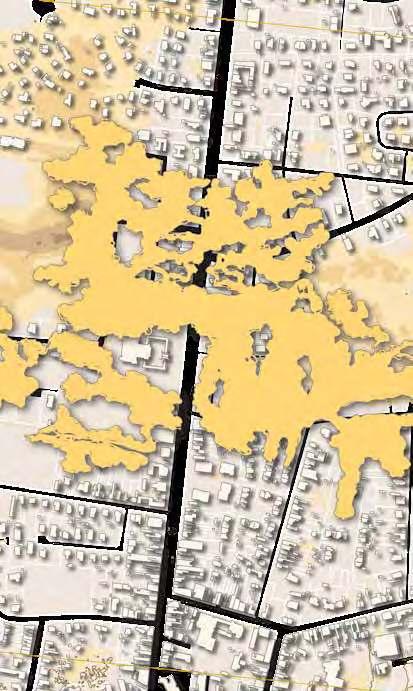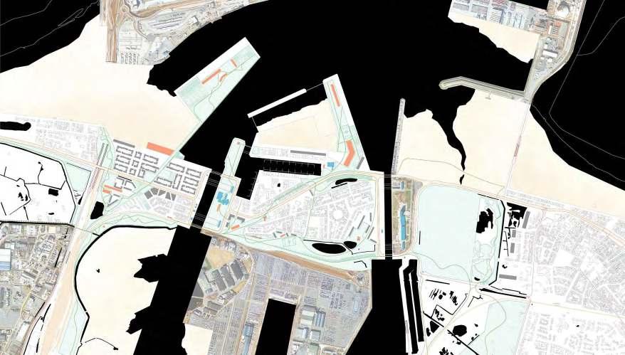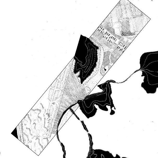 The flooding projection - in blue - give us hints about how to articulate these water features as ponds, and channels to complement the relation between the polder and the urban settlements. The ponds proposed - in black - seeks to protect the existing urban fabric by allocating in its surrounding.
