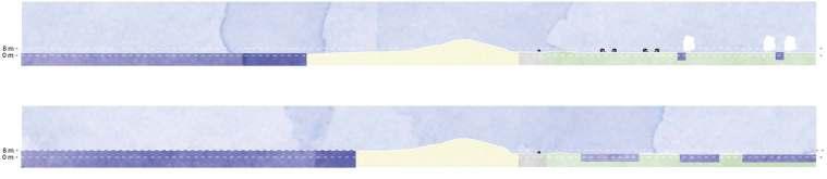 We envision that the restoration process of the dune will increase the resilience of the Atlantic wall on time protecting the urban fabric against future predictions of sea-level rise in a natural way and at the same time will bring back the longing imaginary of the landscape that attracted the people and also the development of the tourist activities in the area.