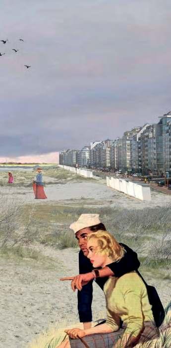 Another current challenge of the Belgian coast, which is also directly related to coastal defence, is the fragmentation of the dune landscape by urbanisation over the years. The Belgian coast is indeed one of the most densely populated in Europe (Vilášek, 2018). Over the years, urbanisation, and more specifically the Atlantic wall, has fragmented the dunescape in order to live as close to the sea as possible. By flattening the dunes, building concrete dikes and imposing apartment buildings, this urbanisation has completely lost its relationship with the landscape. Moreover, the construction of these sea view flats shows the tendency to take into account only the orientation towards the sea without bearing great interest to the dunes, polders, and the edges between all these landscapes. This shows the monointerest in the sea front by residents and visitors alike. This dichotomy between the sea front and the other landscapes, as well as the requalification of the built environment by integrating it more with the different landscapes present, are challenges that the Belgian coast must take up in the coming years. The tourism has followed the same pattern, also focusing solely on the sea front. It is the beaches and the dikes that are taken over by the Belgian population when the first ray of sunshine appears. However, today’s campers and caravans are very few to stay near the sea. It is rather in fields of caravans or bungalows that the Belgian comes to relax on holiday. Tourism, the way the coast is occupied seasonally, is therefore also a challenge that can be rethought.