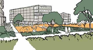 programs evolved and doctoral studies expanded dramatically. Strange ly enough, an old, land use-based masterplan of the 1960s continued to spatially steer the fundamental development dynamics of the university. This land use planning continued a rigid functional zoning that is at odds with the interweaving of contemporary university and societal activities. This is economically surely the case with spin-offs and contract research, but as well socially and culturally. Since quite some time, universities no longer operate in isolation. On the contrary,throughout the world, plenty of university expansions are on the outlook for new creative and research laboratories.They take initiatives in situ, engage themselves where develop ment questions arise or where societal issues manifest themselves.