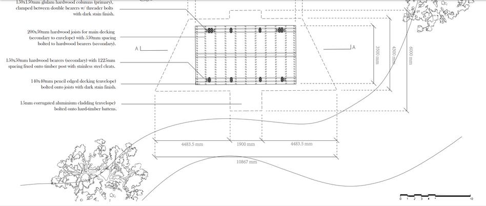 Sangeh Shelter | Located in the temperate region of Bali only 8 degrees South of the equator, Sangeh Shelter aims to provide walkers and passerby with sufficient protection from harsh weather Design elements focused on sun and rain protection becomes a strong point of reference to consider throughout the design process Through multiple shelter iteration, different roofing styles, technique and functionality have been explored The final design adopts a butterfly roofing with open sides and an elevated deck, echoing the traditional Balinese designs of gateways and huts