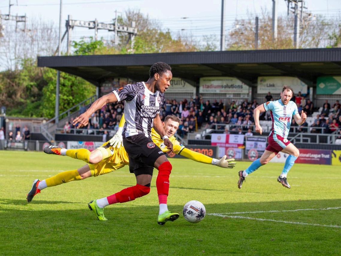 Chasing a long ball, McCoulsky bundled past the defender and rounded Harness to score and send Bell Street ballistic. Tristan Abrahams was denied by Harness in time added on to time added on but Alan Devonshire was happy with two goals on his birthday.