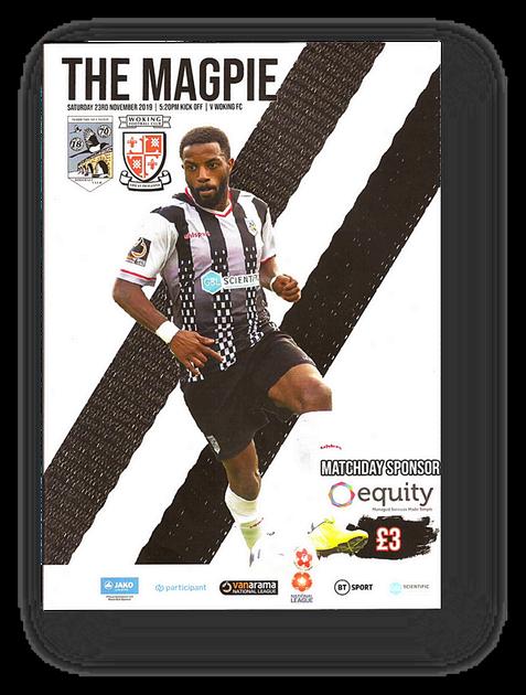 The BT Sports cameras were at York Road five years ago today to broadcast an early evening National League thriller with Woking Recently retired legend Dave Tarpey returned wearing the number seven shirt for the visitors whilst their keeper was United’s current number one Craig Ross Woking dominated the first-half and led 2-0 at the break courtesy of goals from Moussa Diarra and Jamar Loza Second half substitutes Bernard Mensah and Danny Whitehall galvanised the Magpies, Jake Cassidy saw his shot palmed away by Ross before Whitehall got one back on the hour However another ex-Magpie, Jake Hyde put the Cards 3-1 up on 75 minutes; Whitehall pulled the score back to 3-2 with five minutes to spare but the three points would be heading back to Surrey