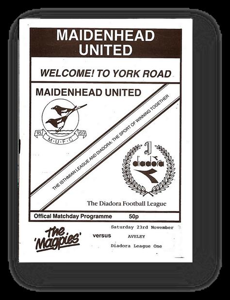 York Road had witnessed another 3-2 score line in 1991, this time in the Magpies favour: a vital Isthmian League 1st Division win over bottom club Aveley New captain Stuart Muir put Maidenhead ahead in the 20th minute, his powerful header from a corner giving Aveley keeper Mark O’Leary no chance O’Leary made a couple of fine saves from Steve Croxford and Benny Laryea before Gareth Gore equalised for the visitors on 28 minutes. Despite United’s dominance the Essex side took the lead on the hour when Stewart Harvey broke away to slot the ball past Peter Rackley As in 2019 a double substitution brought Maidenhead back to life as Gary Hall and Alvan Whittaker entered the field of play and United were back level in the 70th minute, Laryea bundling home Cliff Alleyne scored the winning goal five minutes later from a Paul Holder corner.