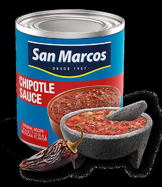 San Marcos® Peppers and Salsas. Iconic products available in 6-lb. formats ideal for Mexican restaurants: Chipotle Peppers smoked in wood-fired ovens with guava leaves; crunchy Whole Jalapeño Peppers; Jalapeño Nacho Thick-cut Rounds; ready-to-serve Jalapeño Pepper Strips; Classic San Marcos® escabeche in convenient strips; tangy Green Tomato (Tomatillo); ready-to-cook Chipotle Pepper Salsa Ready; and tender Nopales. 832-479-7899; empacadora@sanmarcosusa.com; sanmarcosusa.com