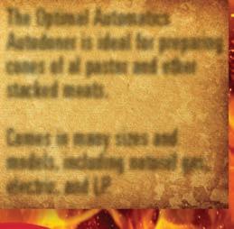 (continued on page 22) The Optimal Automatics Autodoner is ideal for preparing cones of al pastor and other stacked meats. Comes in many sizes and models, including natural gas, electric, and LP.
