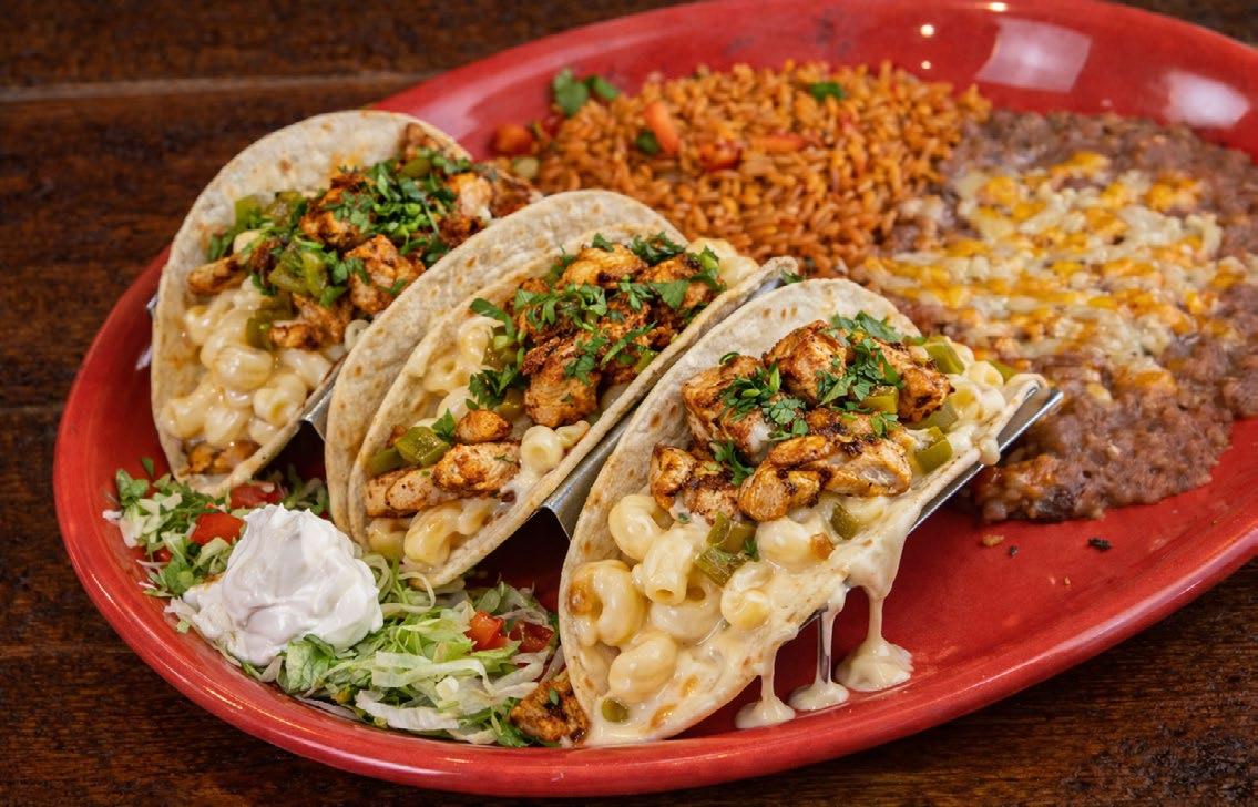 One menu item helping both locations create an extraordinary culinary experience: the Grilled Chicken Mac & Cheese Tacos, which Bonino describes as “a bold comfort-food mashup that features three warm flour tortillas stuffed with our creamy, house-made mac n’ cheese, savory grilled chicken fajitas, fresh diced jalapeños, and cilantro.”