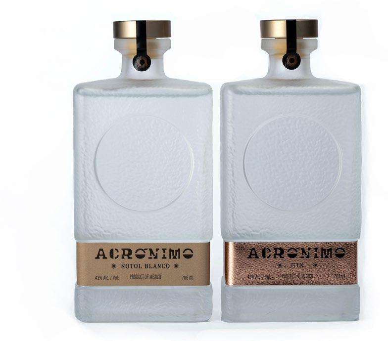 Acrónimo Spirits Gin Finished with Sotol. This new gin — the world’s first gin finished with sotol — is from the Chihuahua, Mexico-based makers of Acrónimo Sotol Blanco. Finished with 17 percent Sotol Blanco and crafted specifically to blend with a gin base; pairs well with a simple tonic or in more elevated drinks like the Paloma Querida made with grapefruit juice, fresh lime juice, agave syrup and a citrus garnish. Acrónimo.com