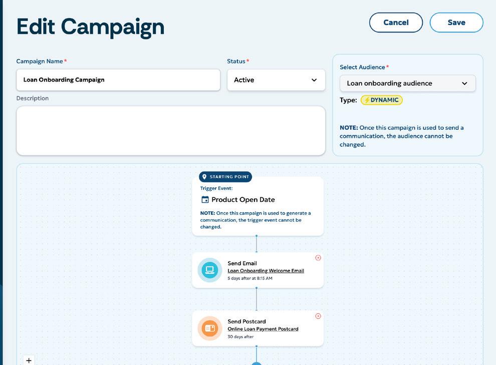 Send relevant product messages triggered by account holder activity.
