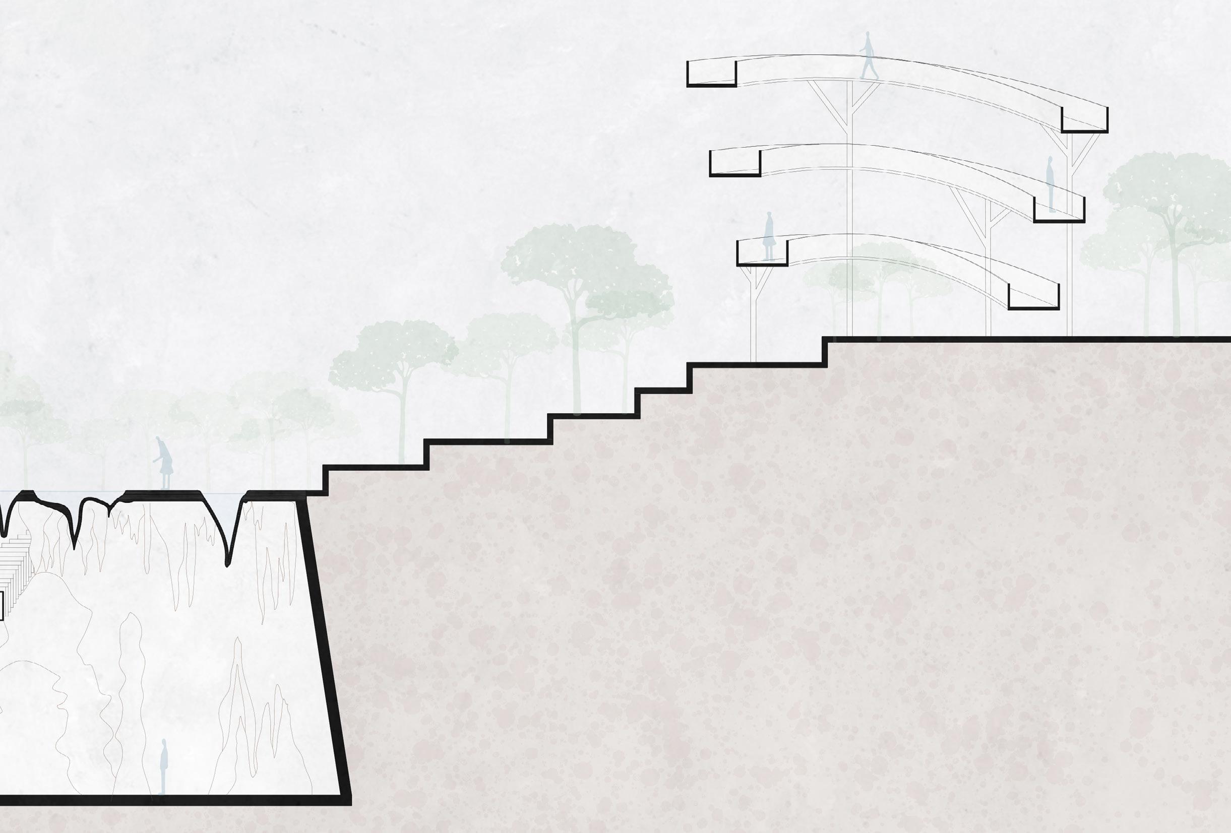Lower level is enclosed to create a sense of darkness. In contrast, the upper level’s design facilitate the passage of light.