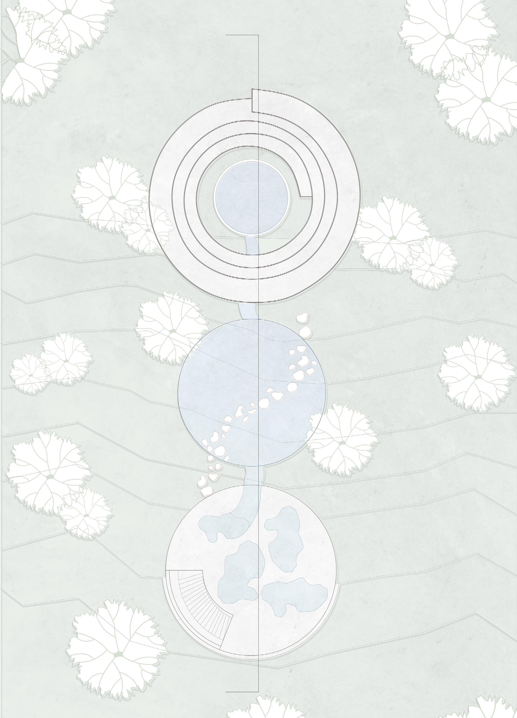 While walking through the exhibitions, visitors will encounter the presence of natural bodies of water as a representation of the flow of emotions over time.