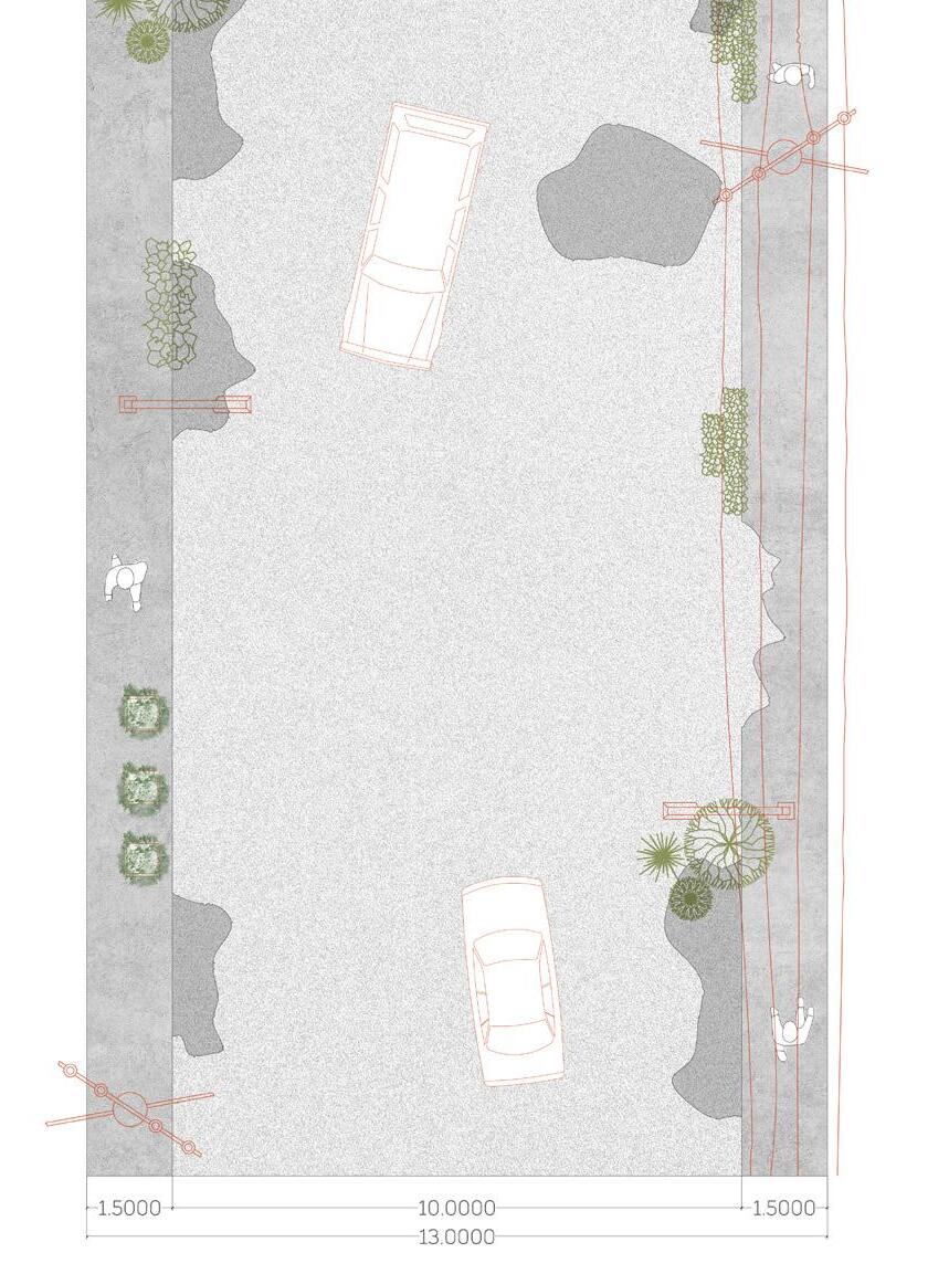 The neighborhood has three types of roadways: Av. Sindicalismo, the surrounding secondary streets, and the tertiary streets. The organization and design of these roads aim to promote non-motorized mobility. Additionally, four public space interventions were created in which the stream evolves into an urban lung with recreational and commercial activities.