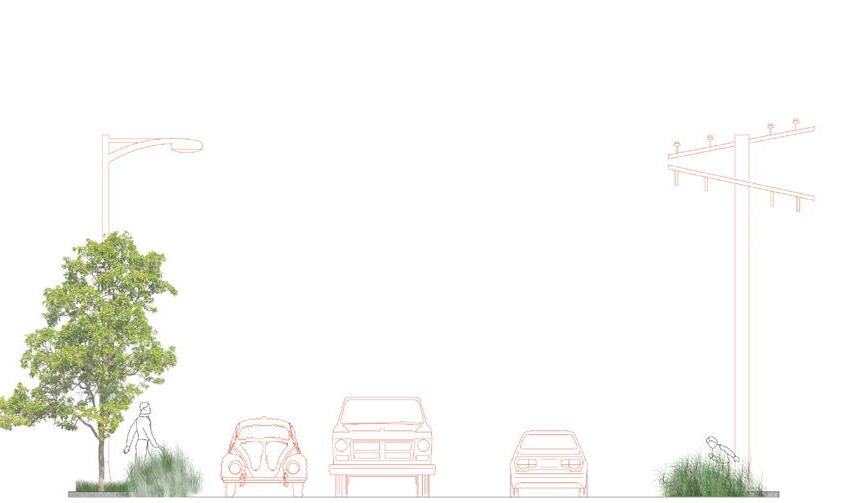 3. Equipment strip for municipal services, urban furniture and vegetation.