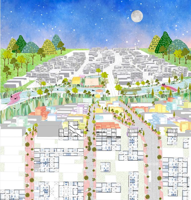 According to the principles of Soft City by David Sim, cities contribute to creating more sustainable and happier communities for their residents when the scale of buildings is reduced, diversity of housing typologies and non-domestic Architecture Portfolio | 2023 42