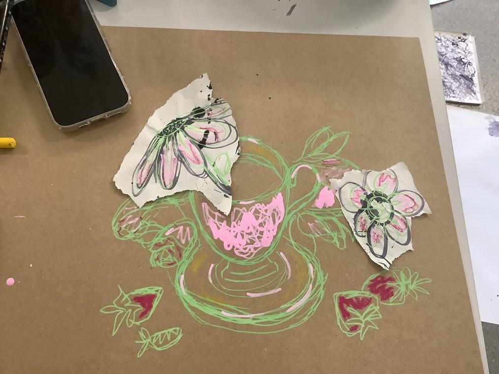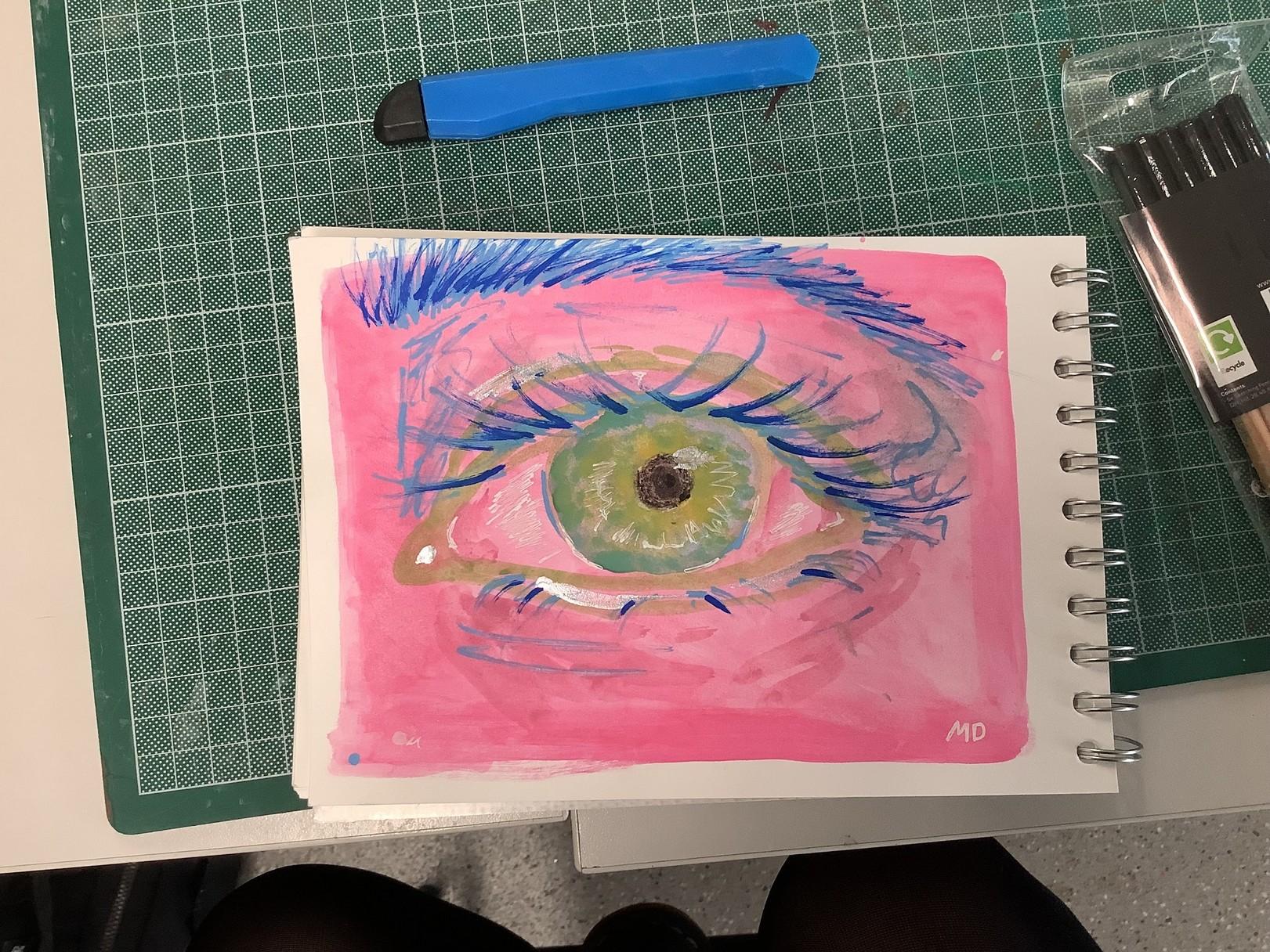 Most of these are very quick rough sketches and tried using charcoal for some but also using multiple materials such as the eye, I used paint and posca pens over the top.