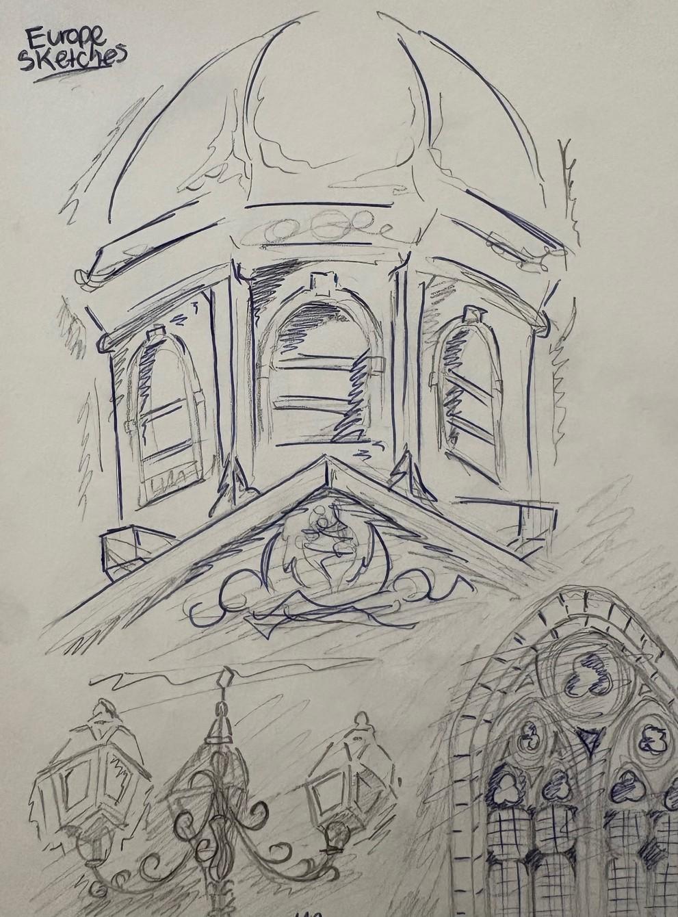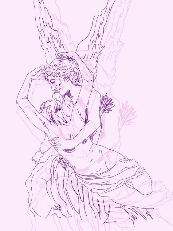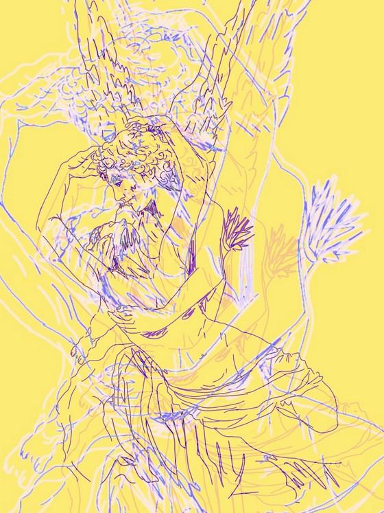 Did a digital sketch of a French statue and edited different versions to add colour.