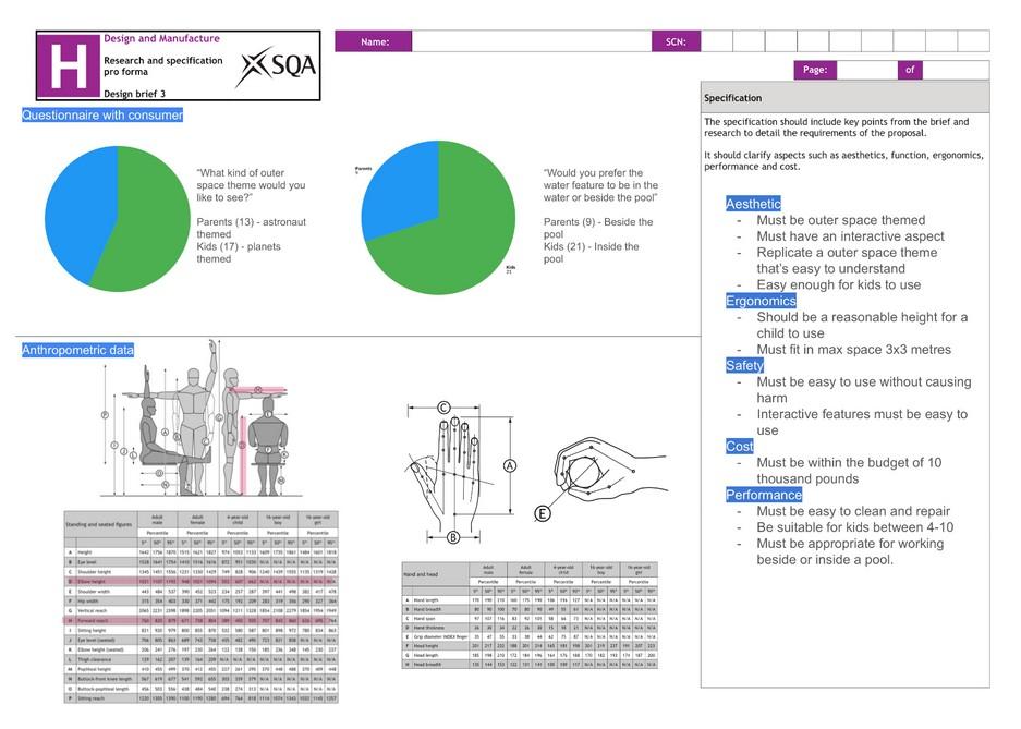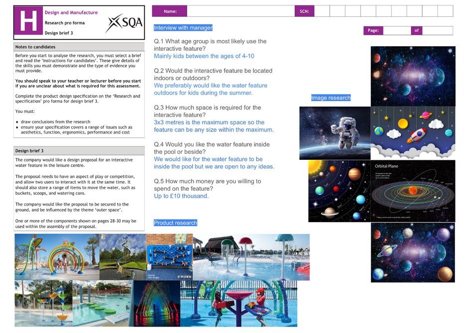 For my design and manufacture folio my brief was to create an interactive water feature for children with a space theme. I have included some of my ideas as well as creating sample components