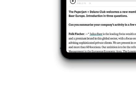 The Paperjam+Delano Business Club aims to make a major contribution to this e ort by bringing together entrepreneurs, managers of SMEs and VSBs, major international firms and influential decision makers from the main economic sectors, including finance, technology, real estate and the professions that support them, such as communications and human resources.